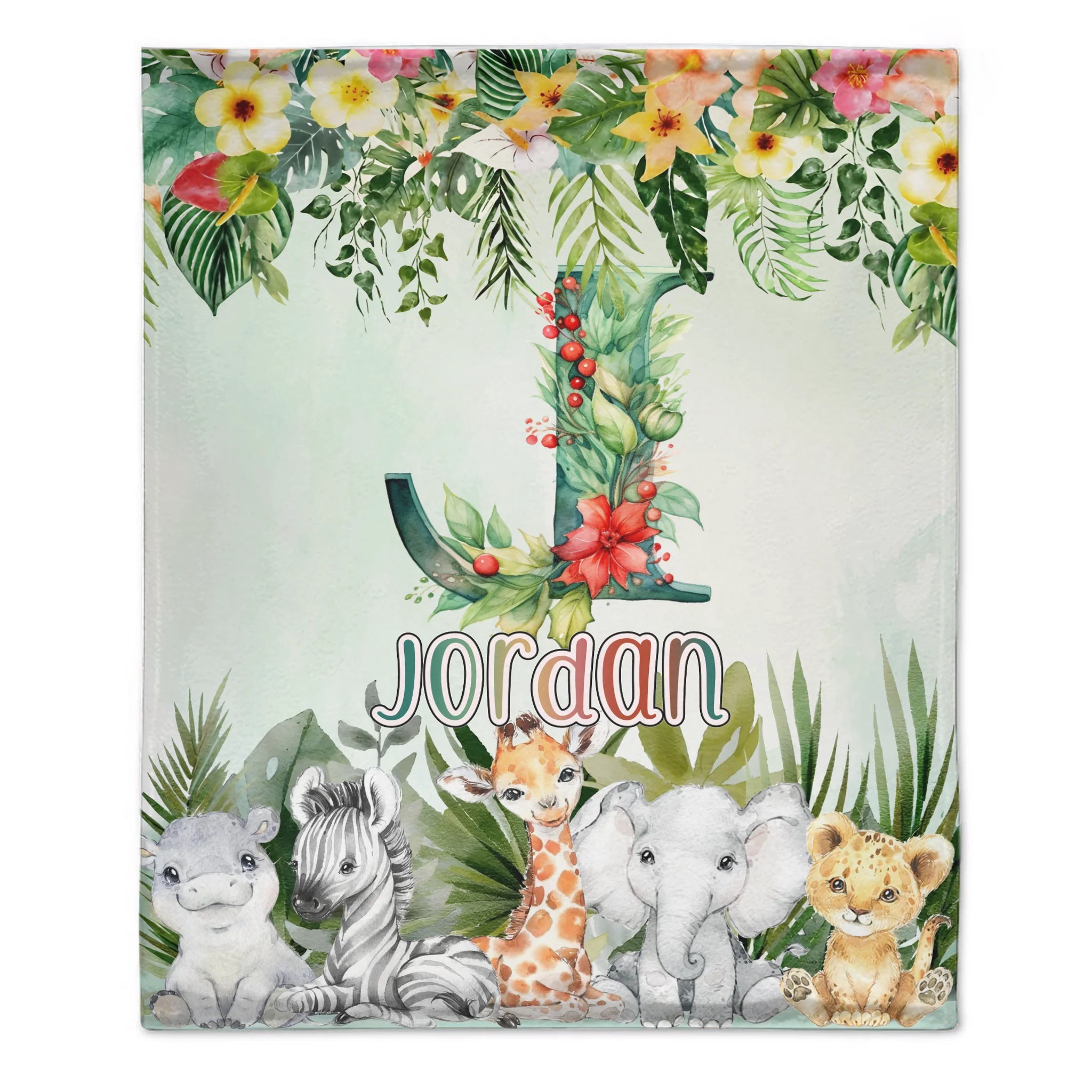 Custom Jungle Animal Blanket - Personalized Safari Baby Throw Blanket - Gift for Kids and Newborns