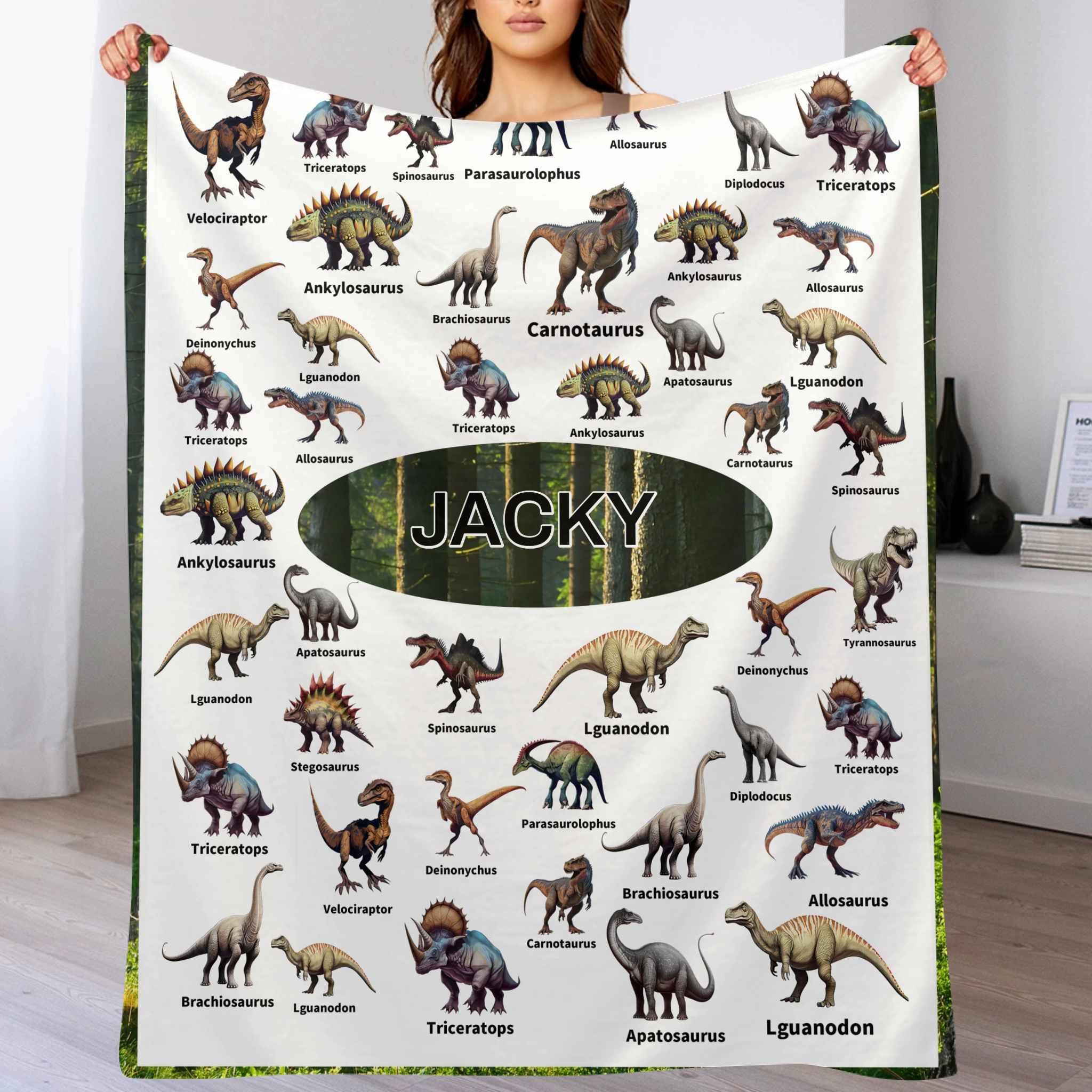 Personalized Jurassic Dinosaur Name Custom Blanket