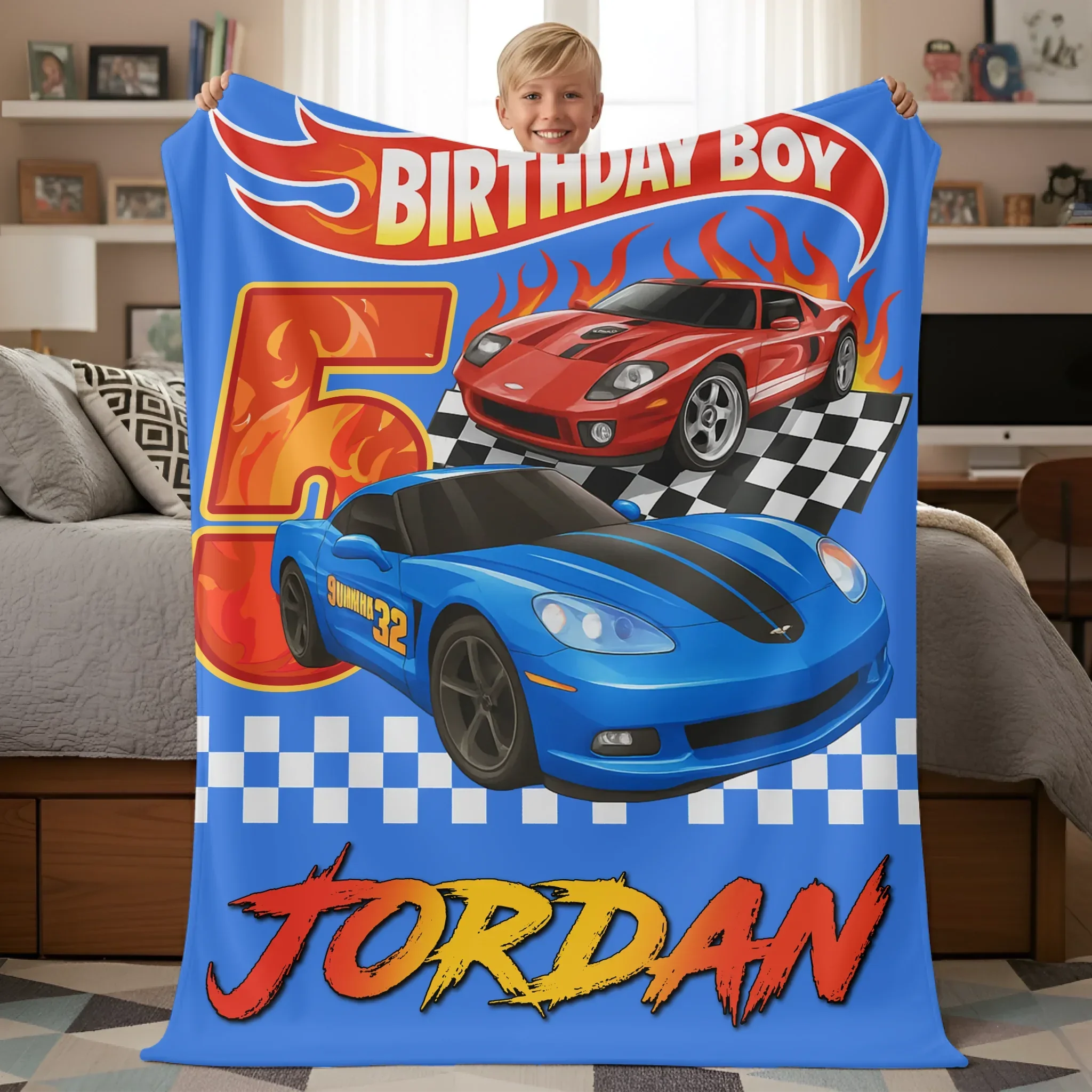 Custom Sports Car Blanket - Personalized Race Car Theme Throw Blanket - Gift for Boys and Girls