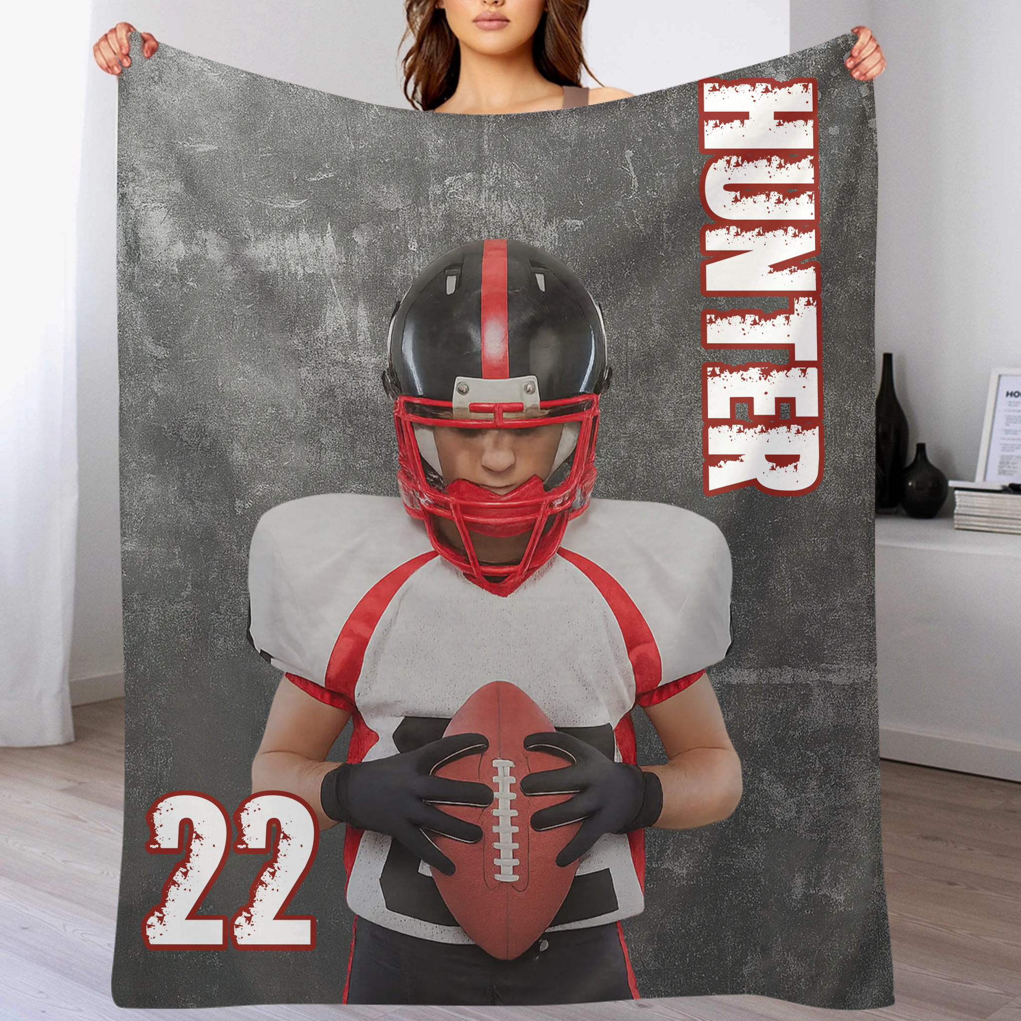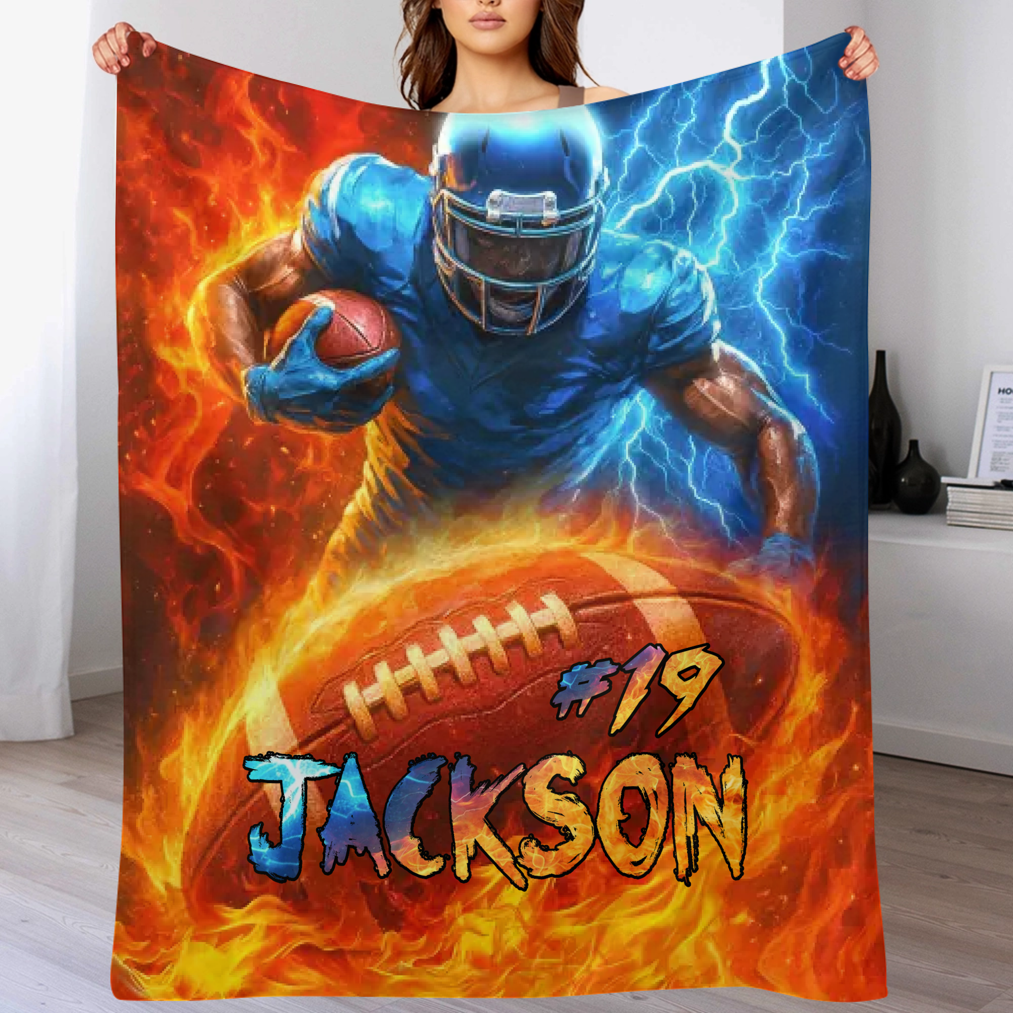 Personalized Football Blanket Custom Sport Gift-Teen Boy Football Gift For NFL Custom Football Blanket With