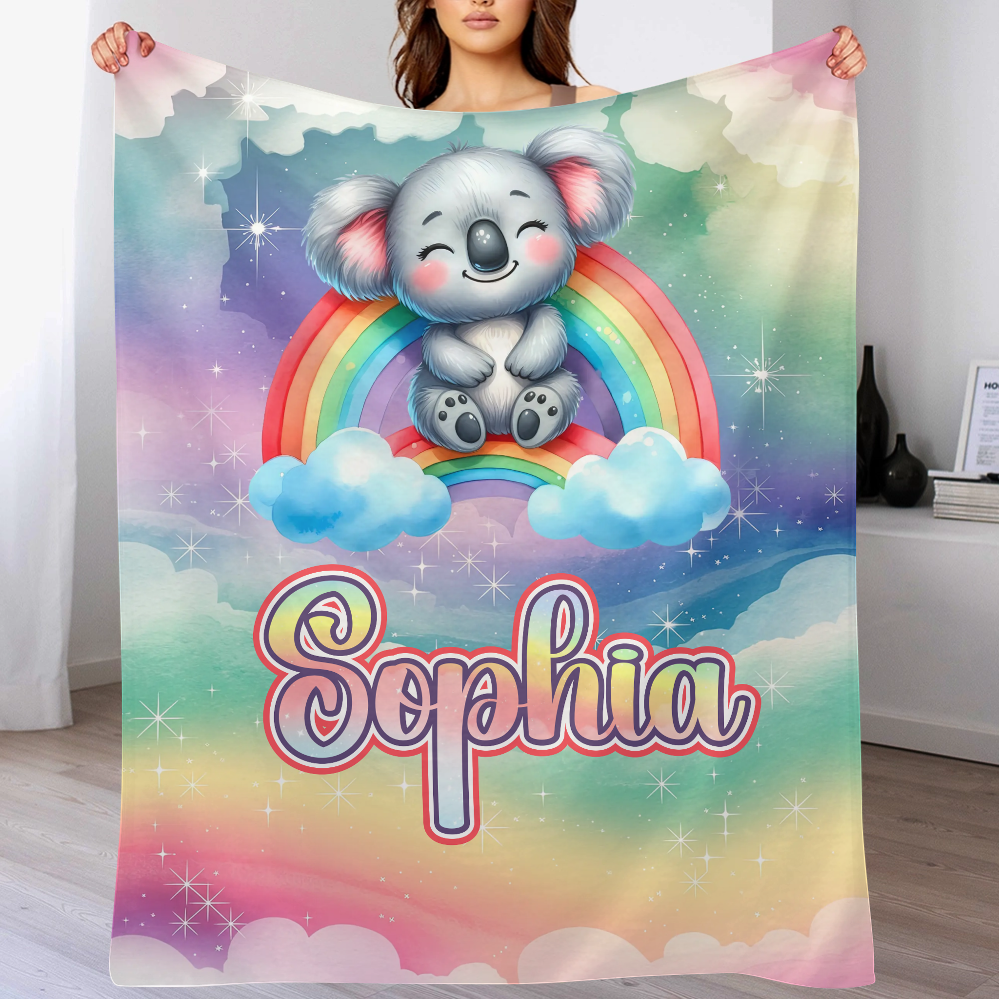 The Dreaming Koala On The Rainbow Custom Blanket - Personalized Name - Start The School Season