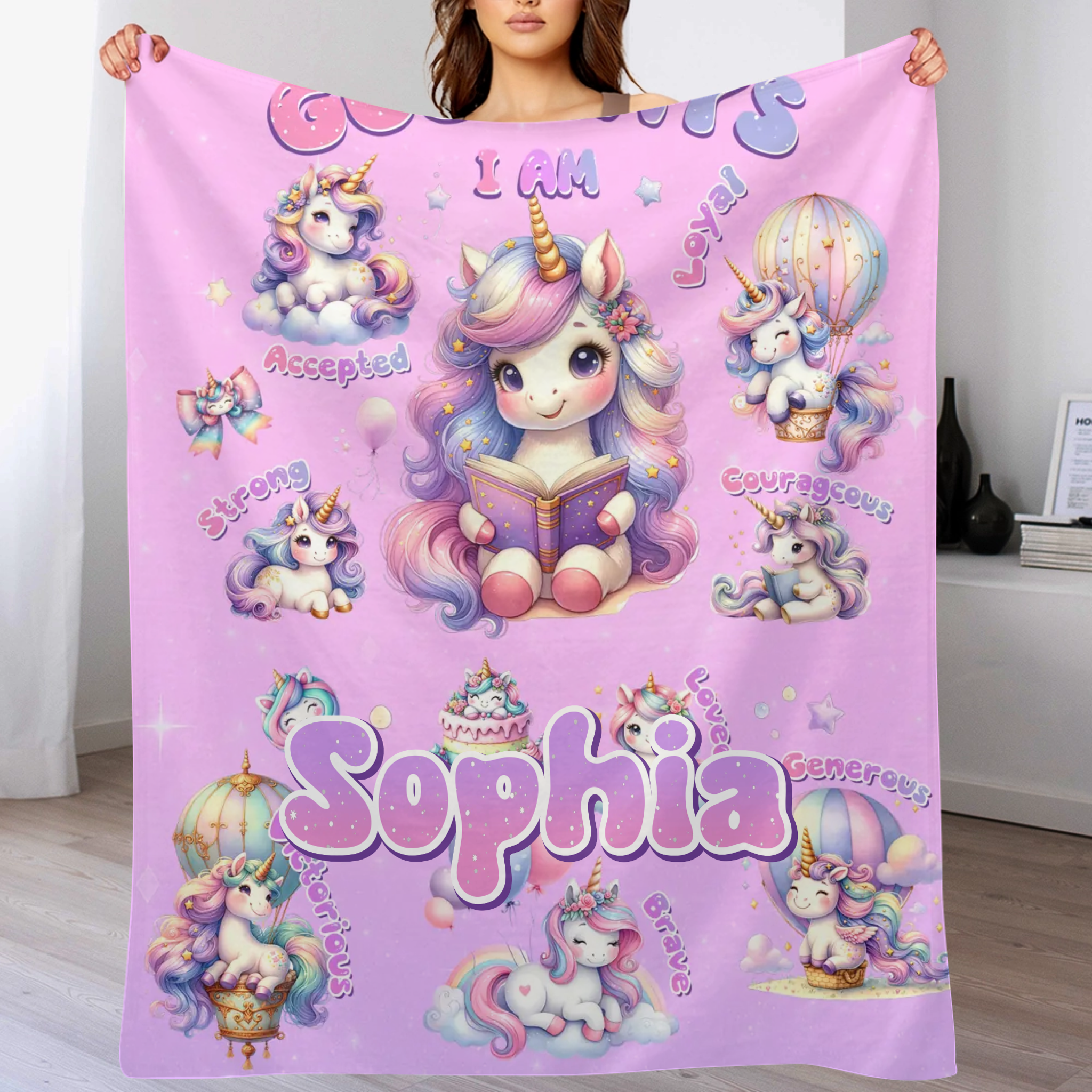 Custom Unicorn Blanket - Personalized Unicorn Name Throw - Gift for Kids & Girls