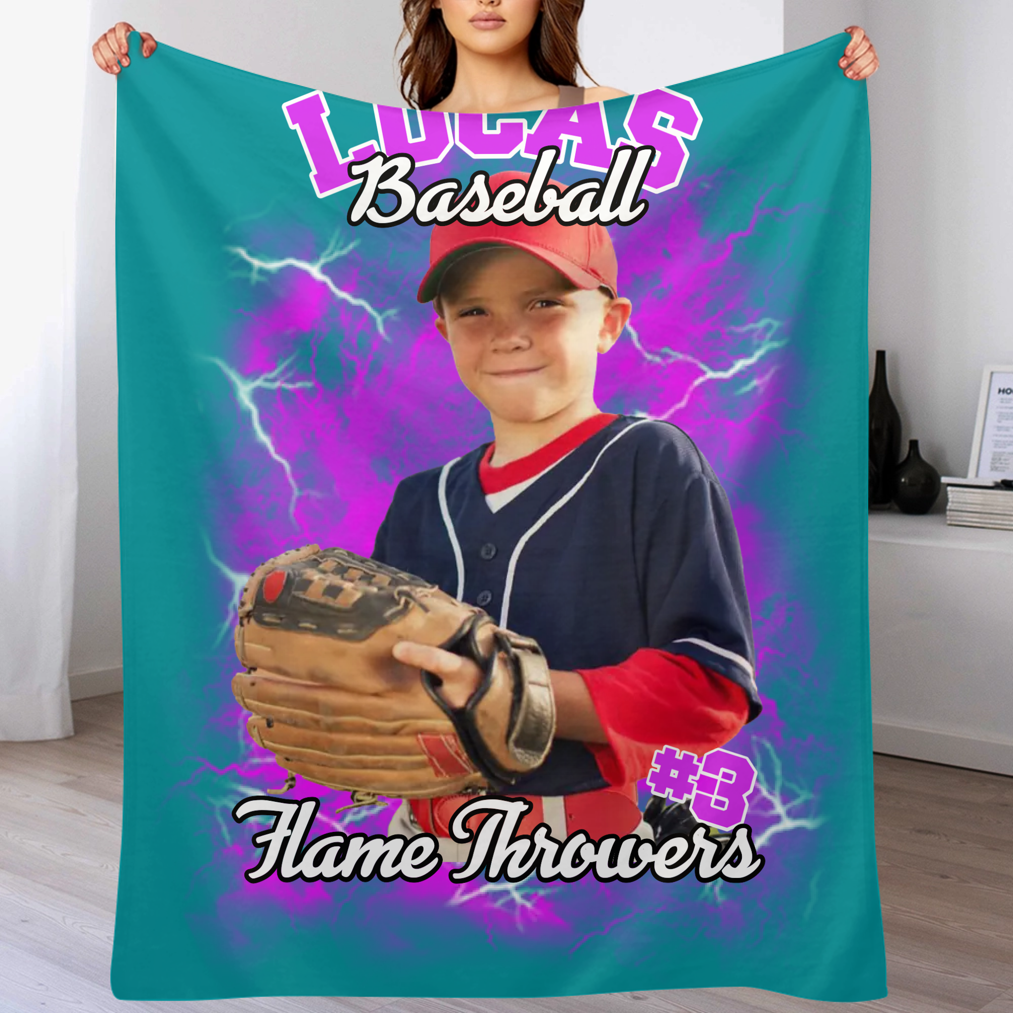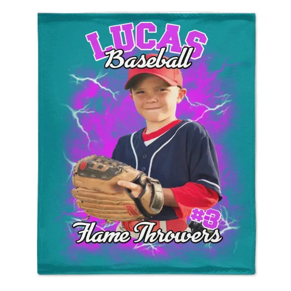 Customized Sports-Themed Blankets - Personalized Name,Number,Photo and Lightning Bolt Background on Multi-Colored Optional Blanket - A Gift For Sports Lover,Sports Player
