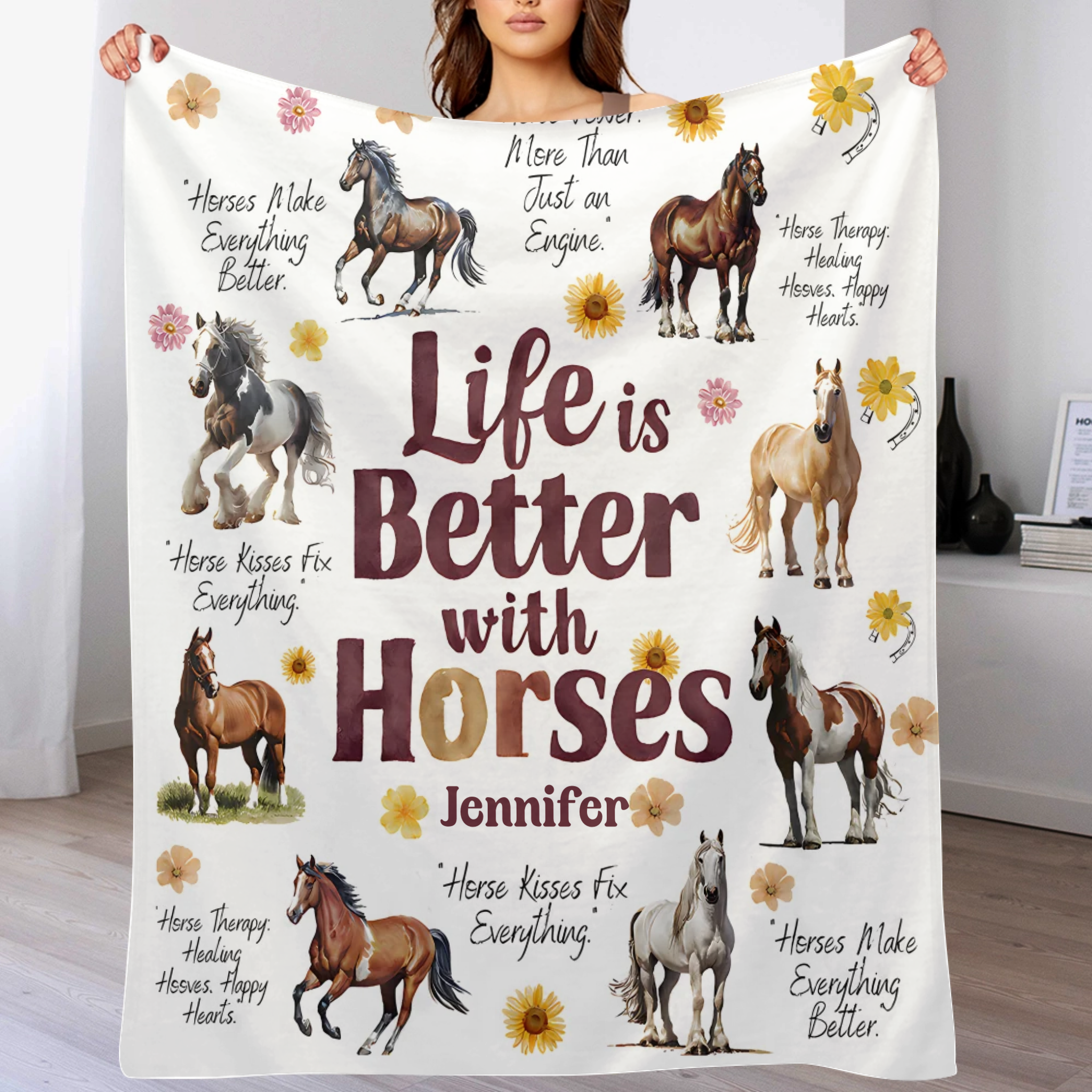 Life Is Better With Horses - Personalized Horse Blanket - Gift for Horse Lovers