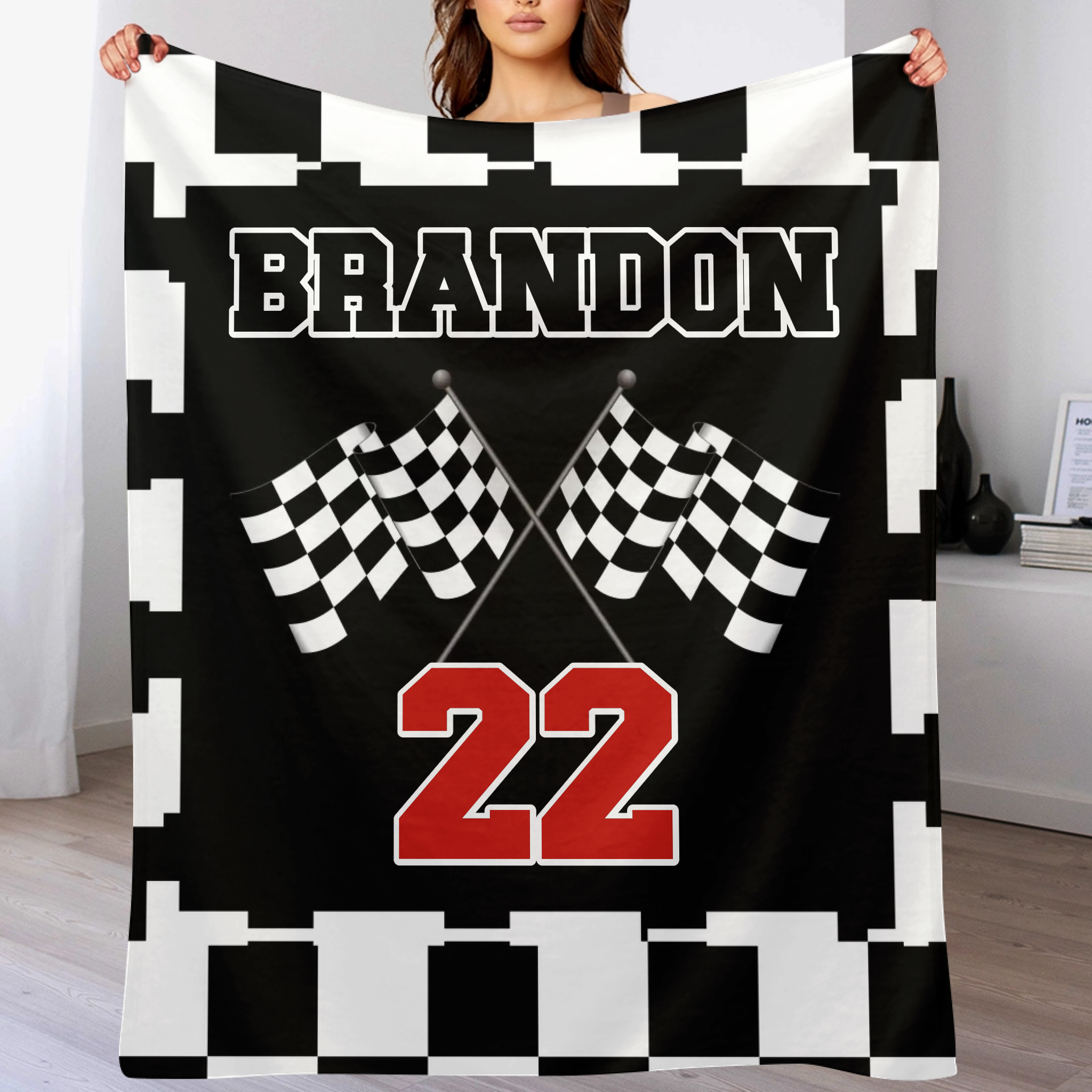 Customized Black and White Chevron Blanket - Personalized Name and Number Black and White Flag Pattern Blanket - A Gift For Friend,Colleagues