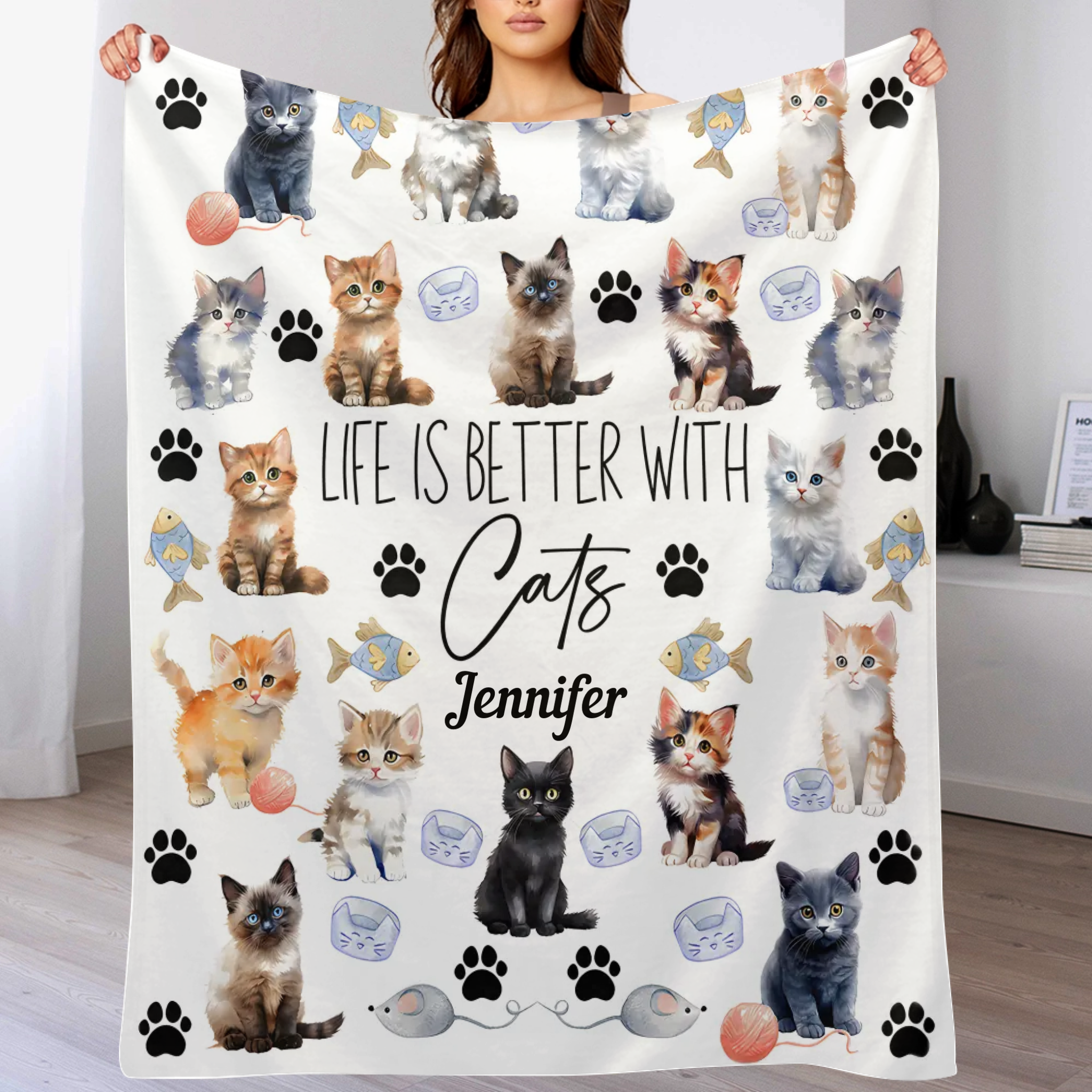 Life Is Better With Cats - Personalized Cat Blanket - Gift for Cat Owners,Cat Lovers