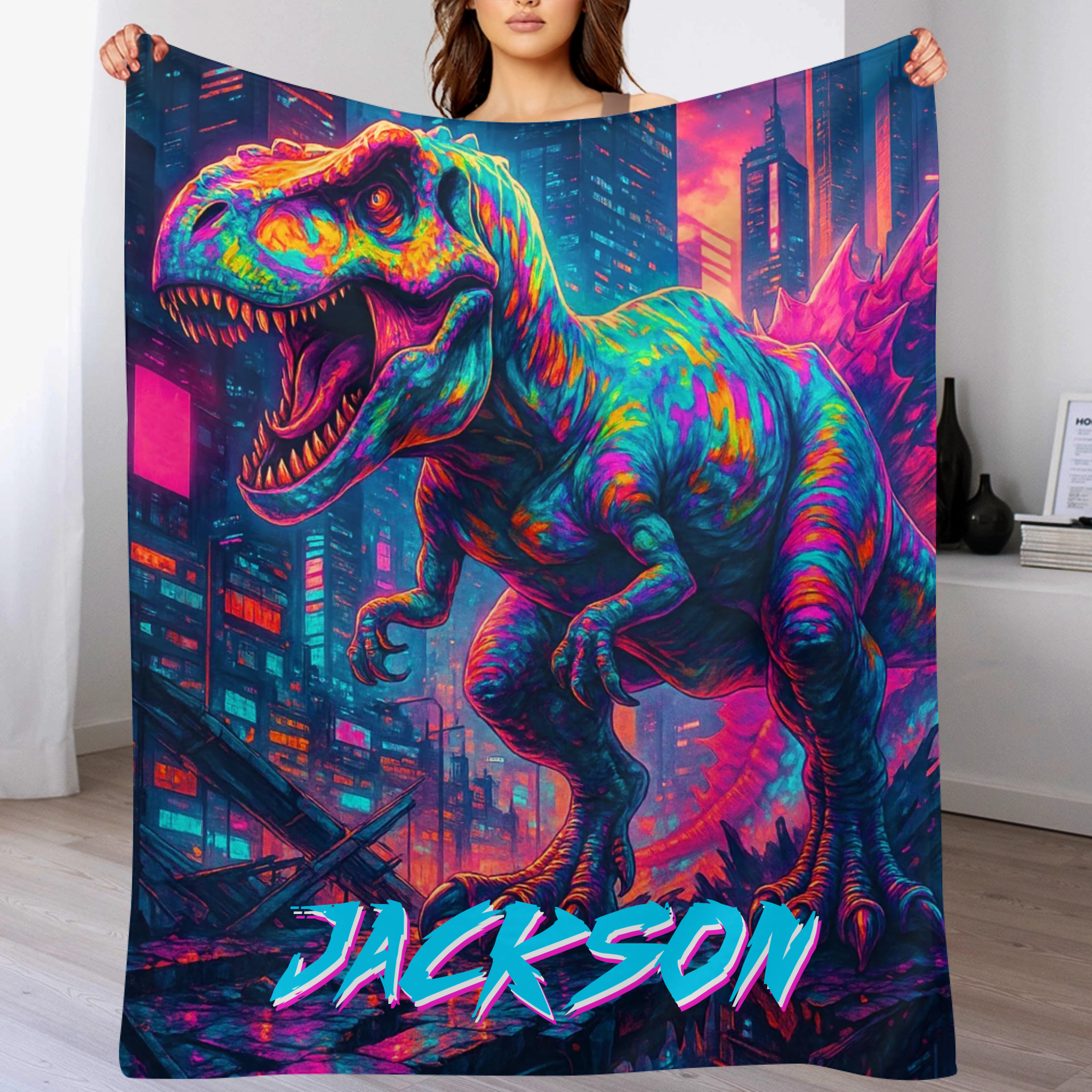 Cyberpunk Dinosaur - Personalized Blanket