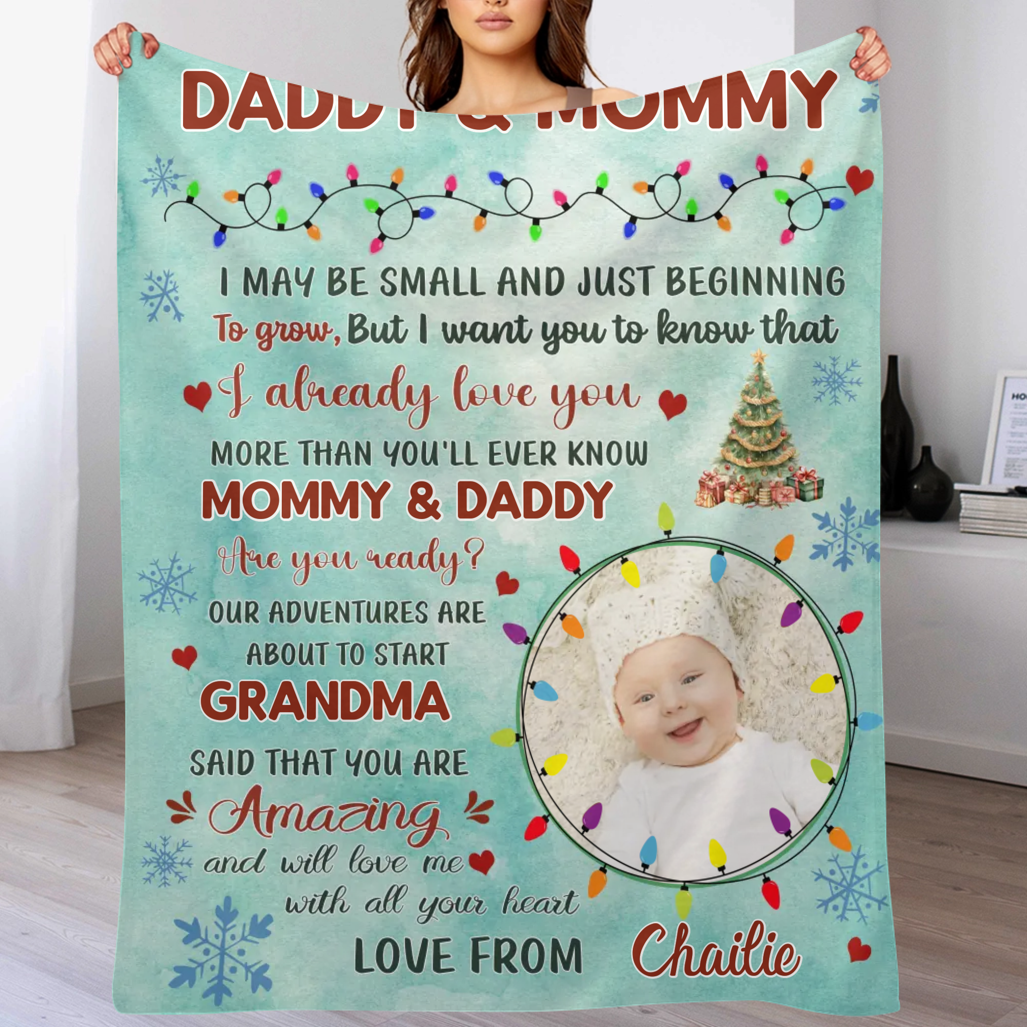 Custom Photo Personalized Baby Blanket - Dear Mommy And Daddy Family