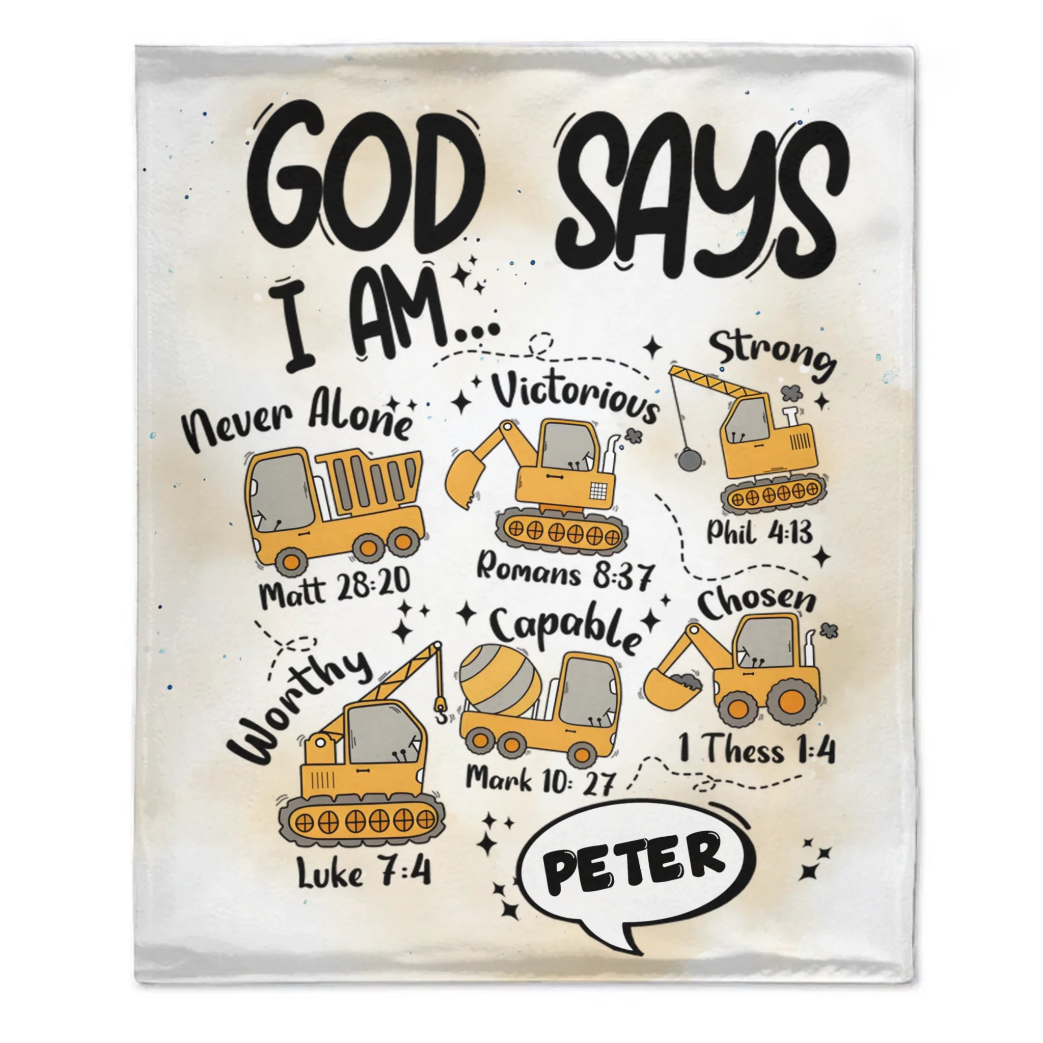 Customized Construction Vehicle Dinosaur Animal Blanket - Personalized Name - Gift for Kids