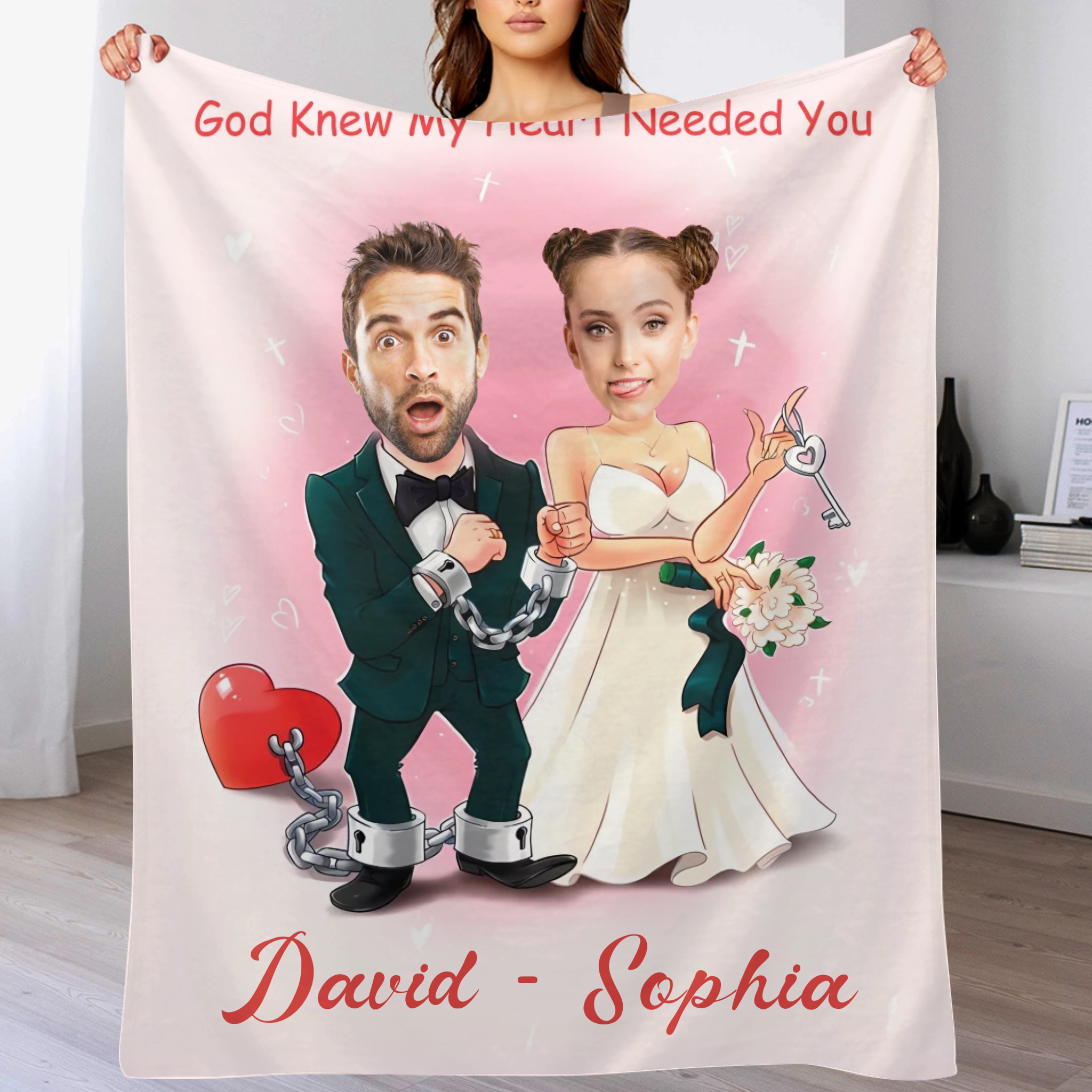 Customized Couple's Theme Blanket - Personalized Couple Photo and Name Wedding Character Image Blanket - A Gift For Girlfriend,Boyfriend,Wife,Husband