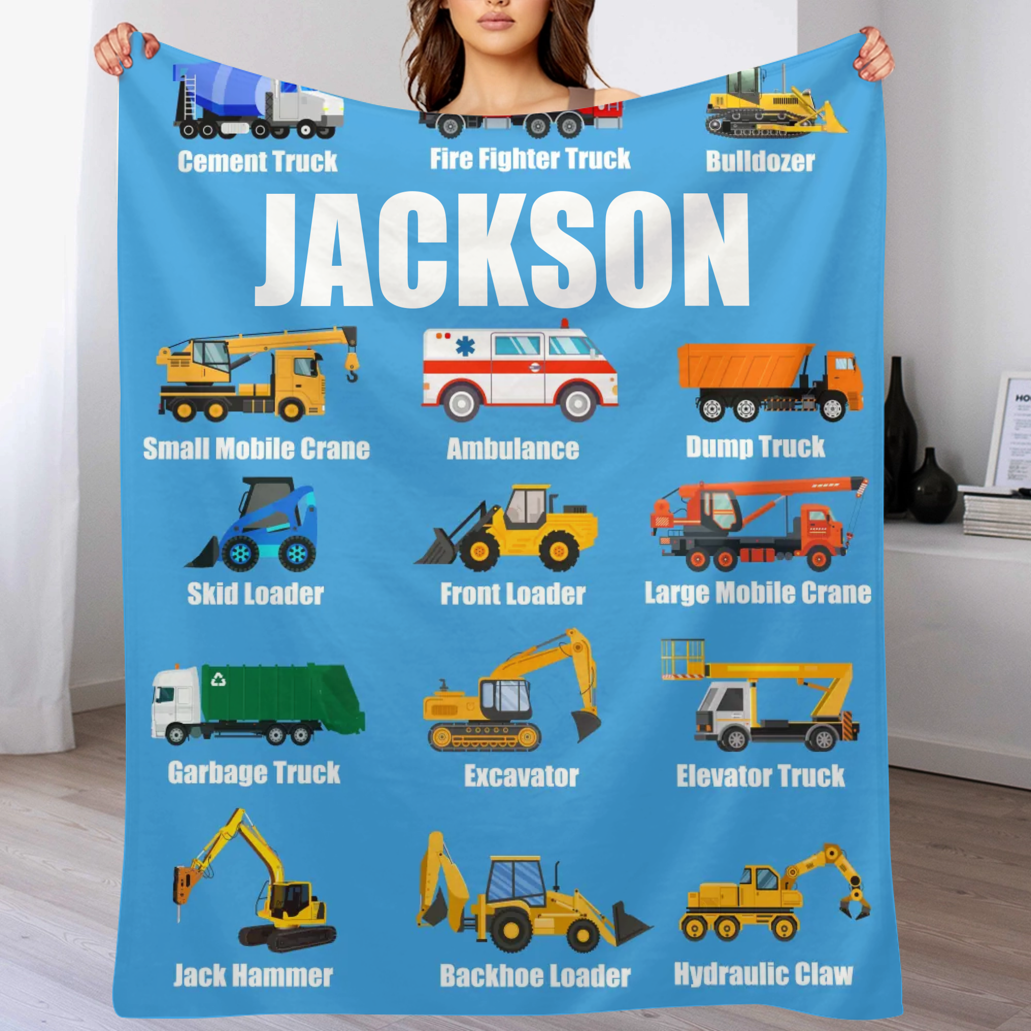 Customized Patterns For Construction Excavators - Personalized Name Soft Truck Pattern Blanket - A Gift For Child,Friend