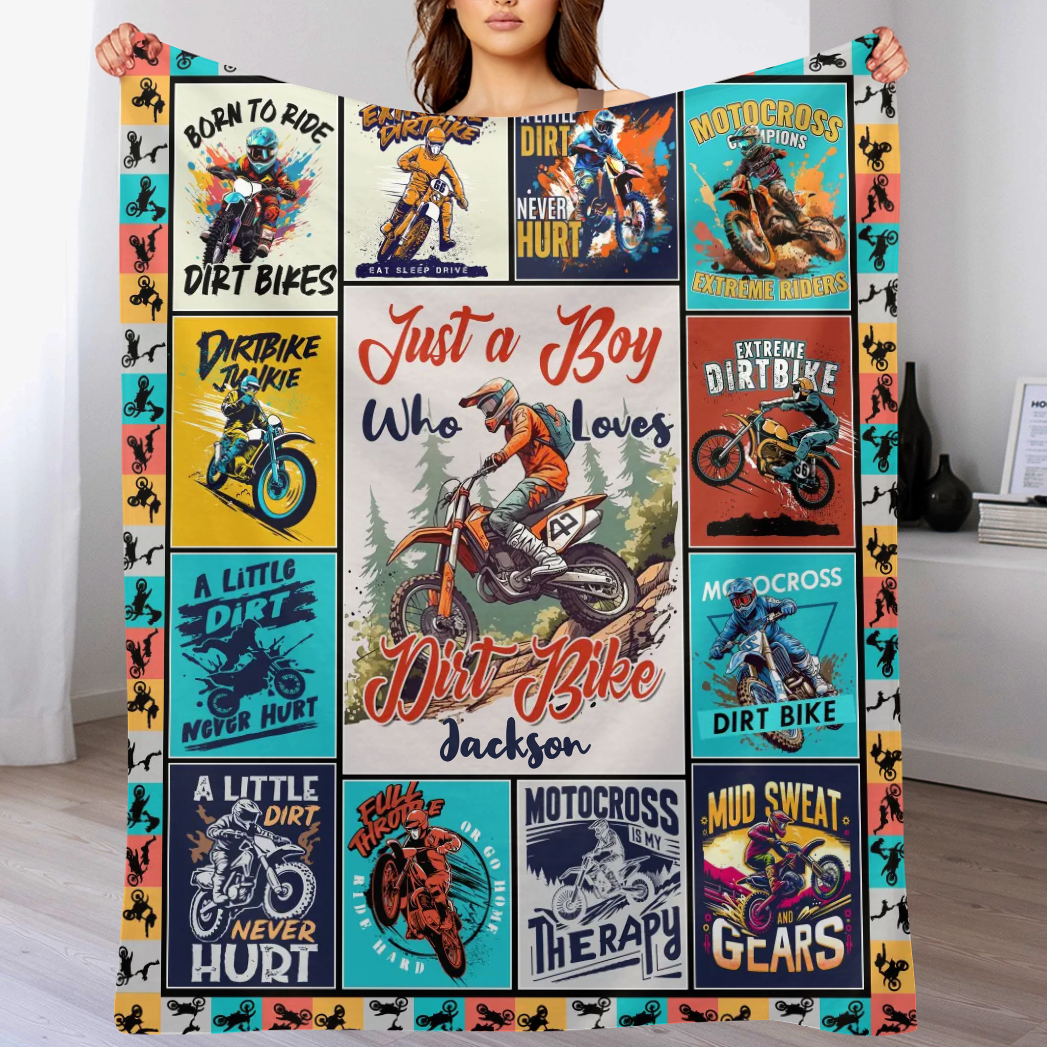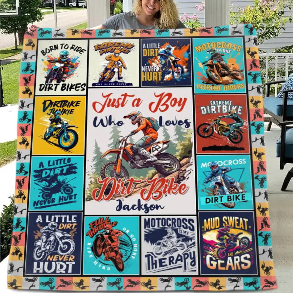 Personalized Dirt Bikes Blanket for Boys Kids Teens - Just a Boy Who Loves Dirt Bikes