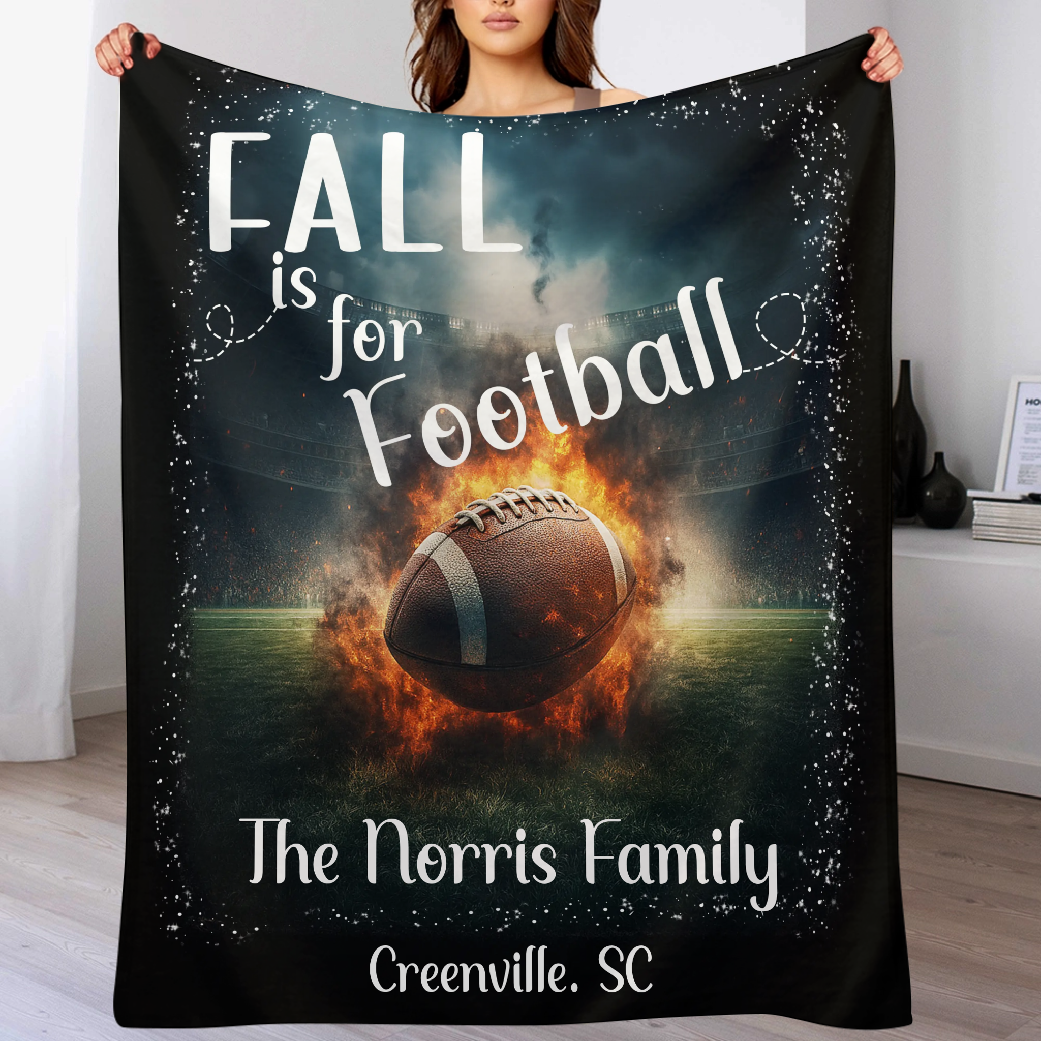 Custom Football Name Blanket – Personalized Flaming Football Wall Art – Gift for Football Fans