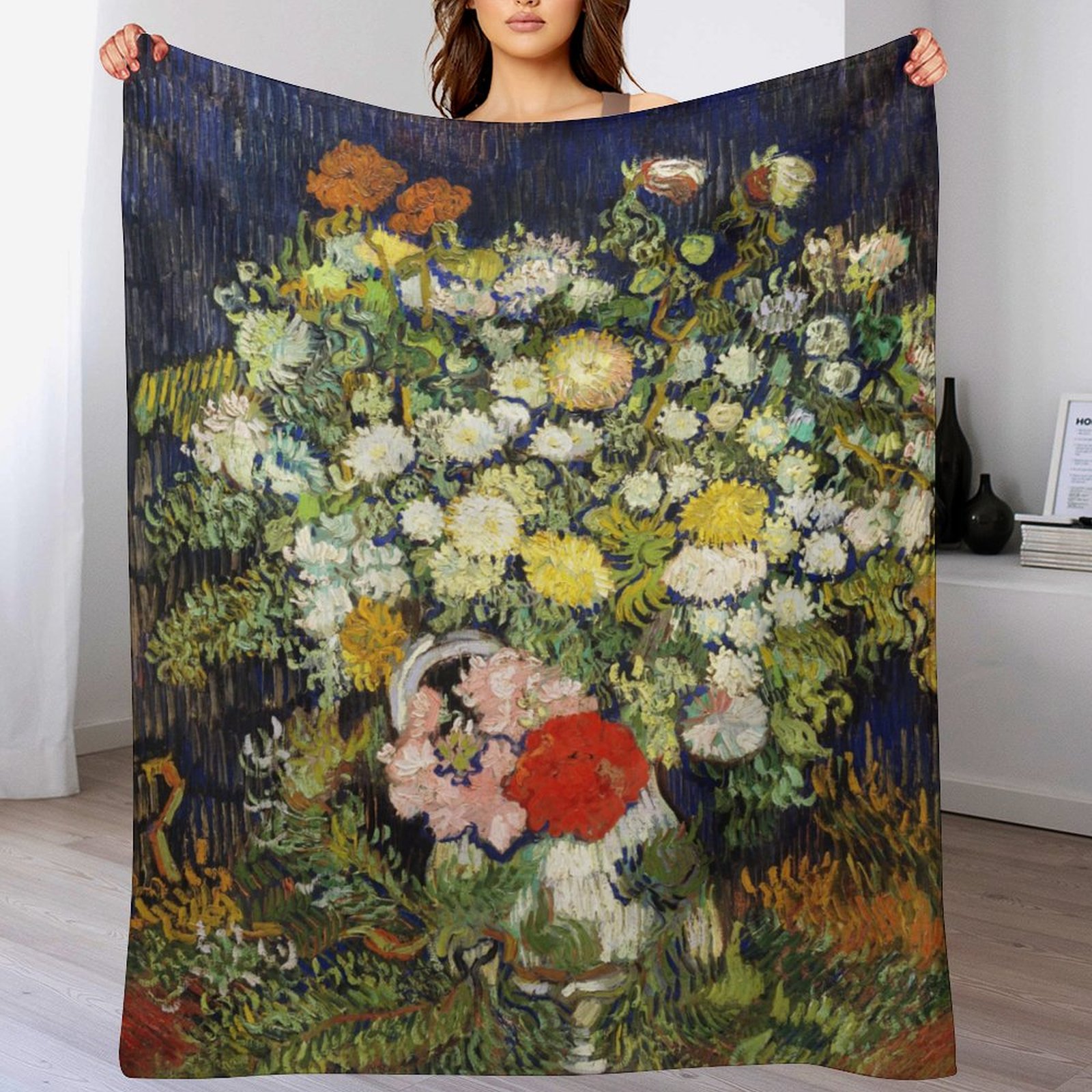 Van Gogh's <Bouquet of Flowers in a Vase> Art Blanket: Aesthetic Gift for Art Enthusiasts