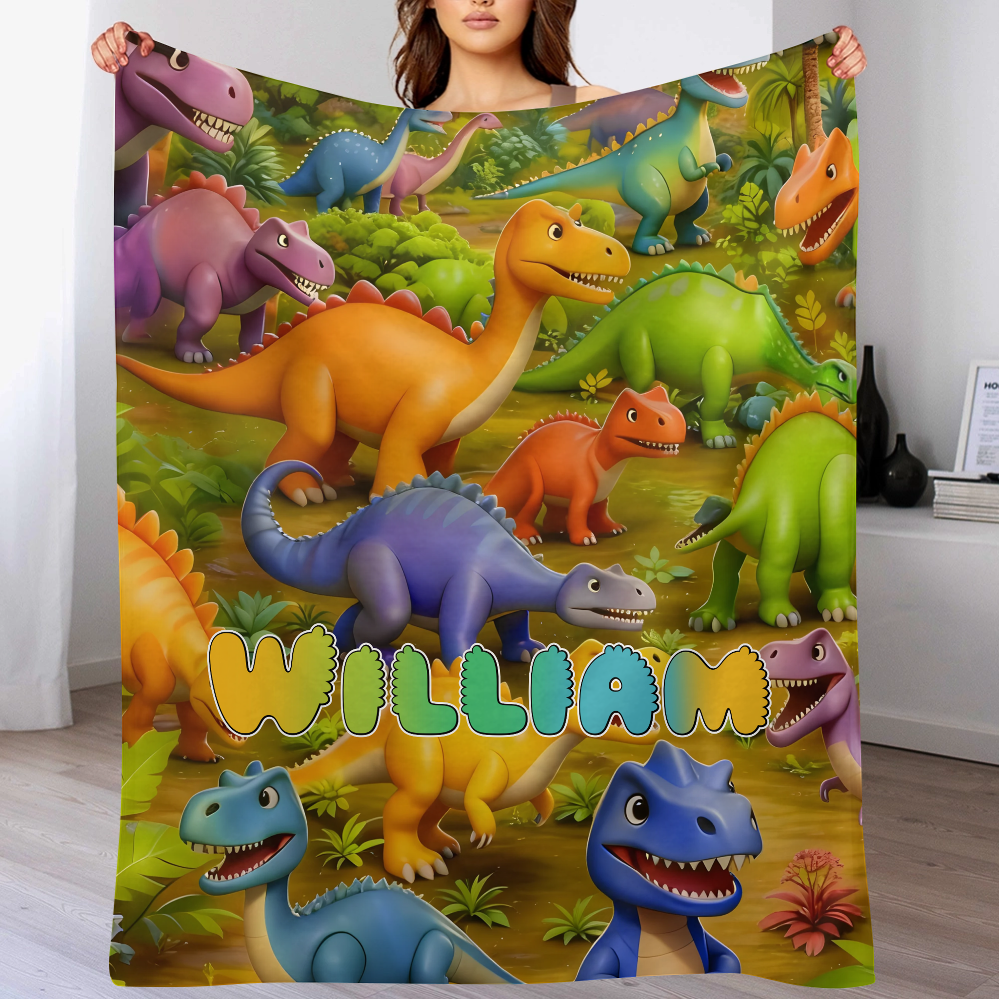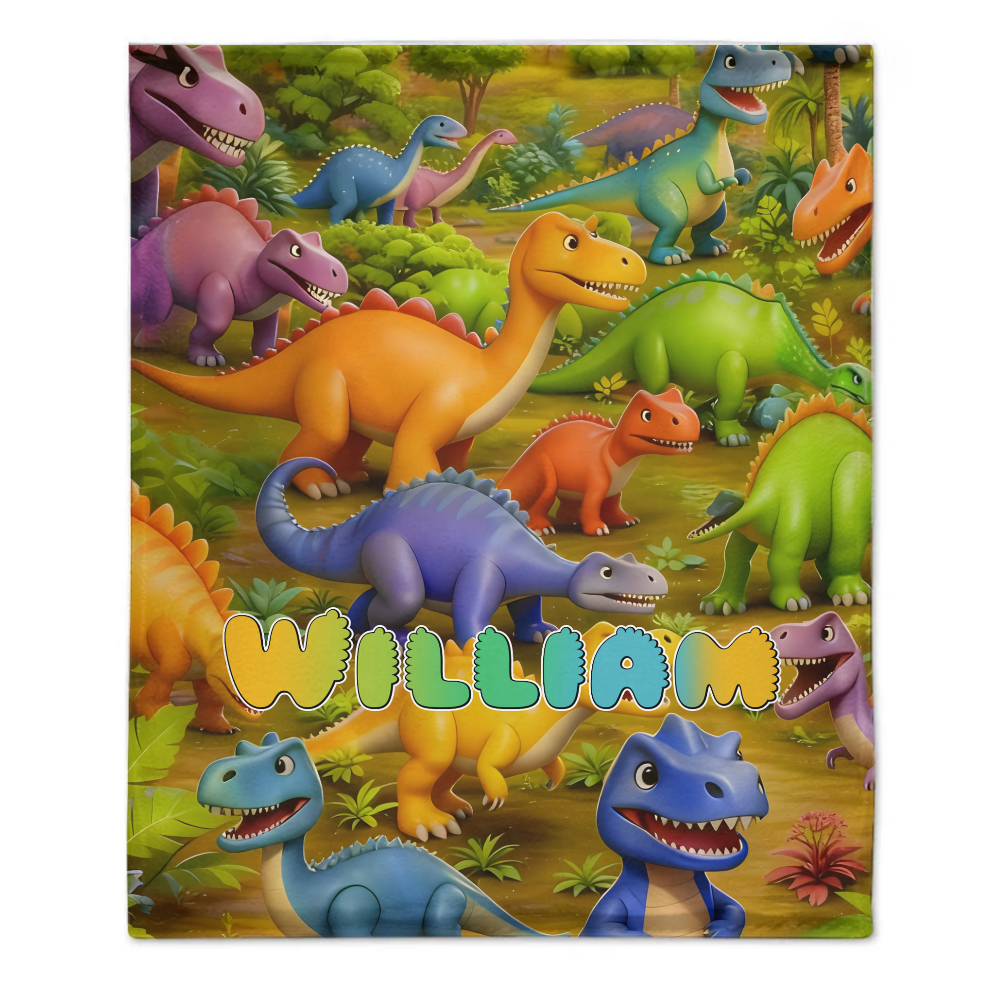 Custom Dinosaur World Blanket – Personalized Cartoon Dino Throw – Gift for Kids & Boys