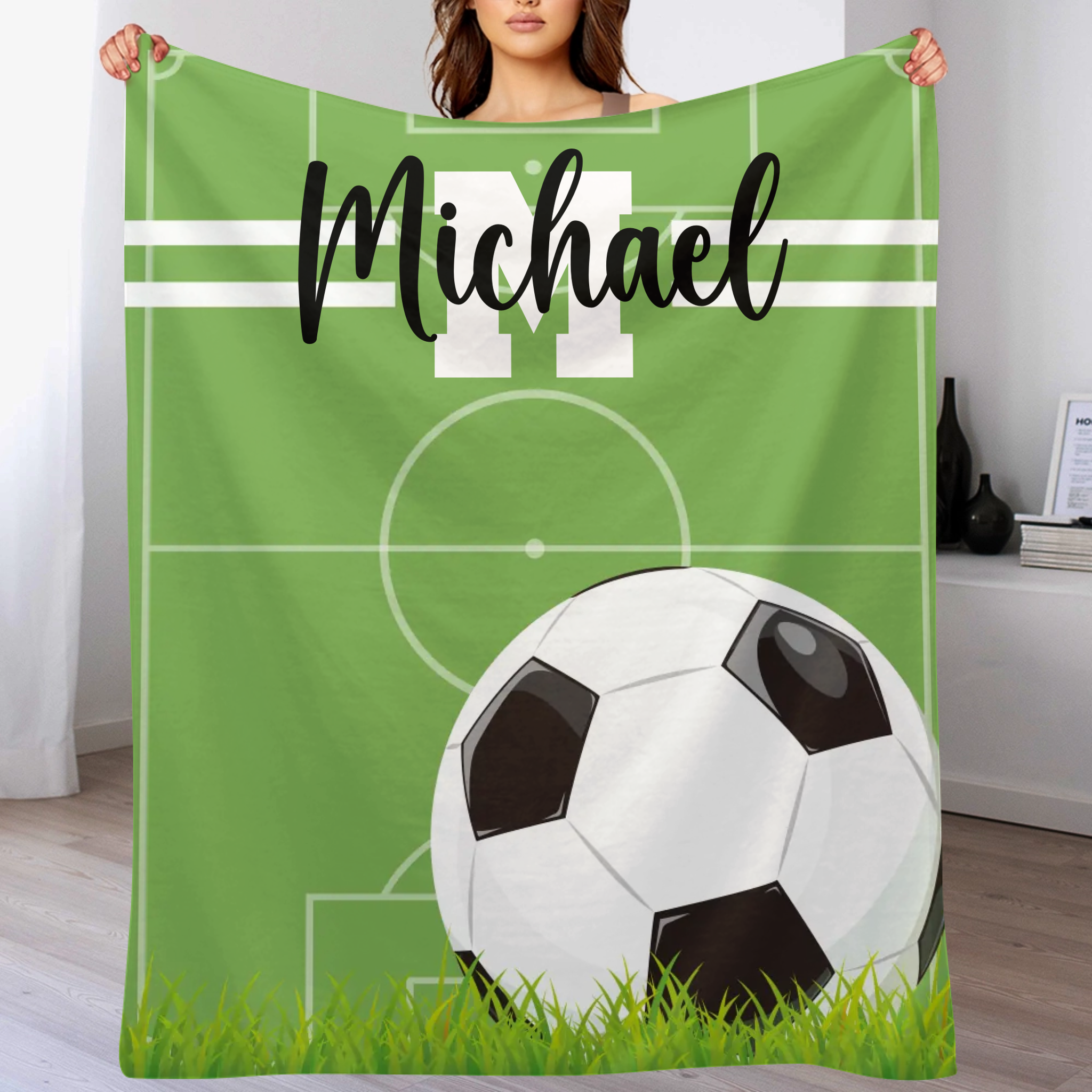 Personalized Name Custom Kids Soccer Blanket - Gifts for Kids Who Love Soccer
