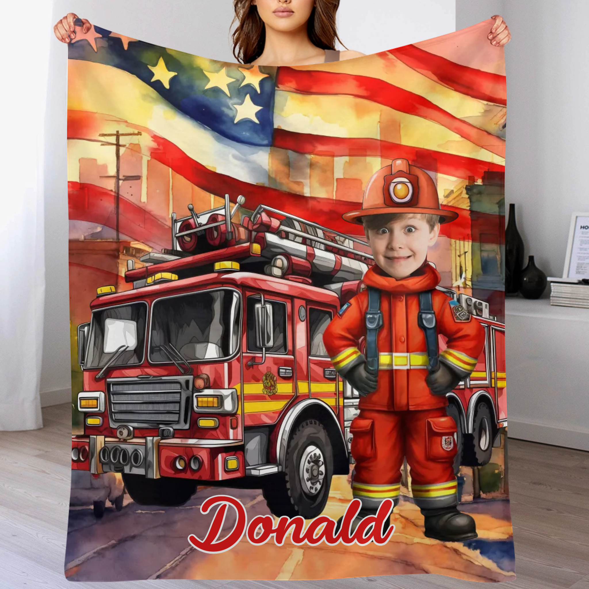Personalized Independence Day Firefighter Custom Blanket - Gift for Kids