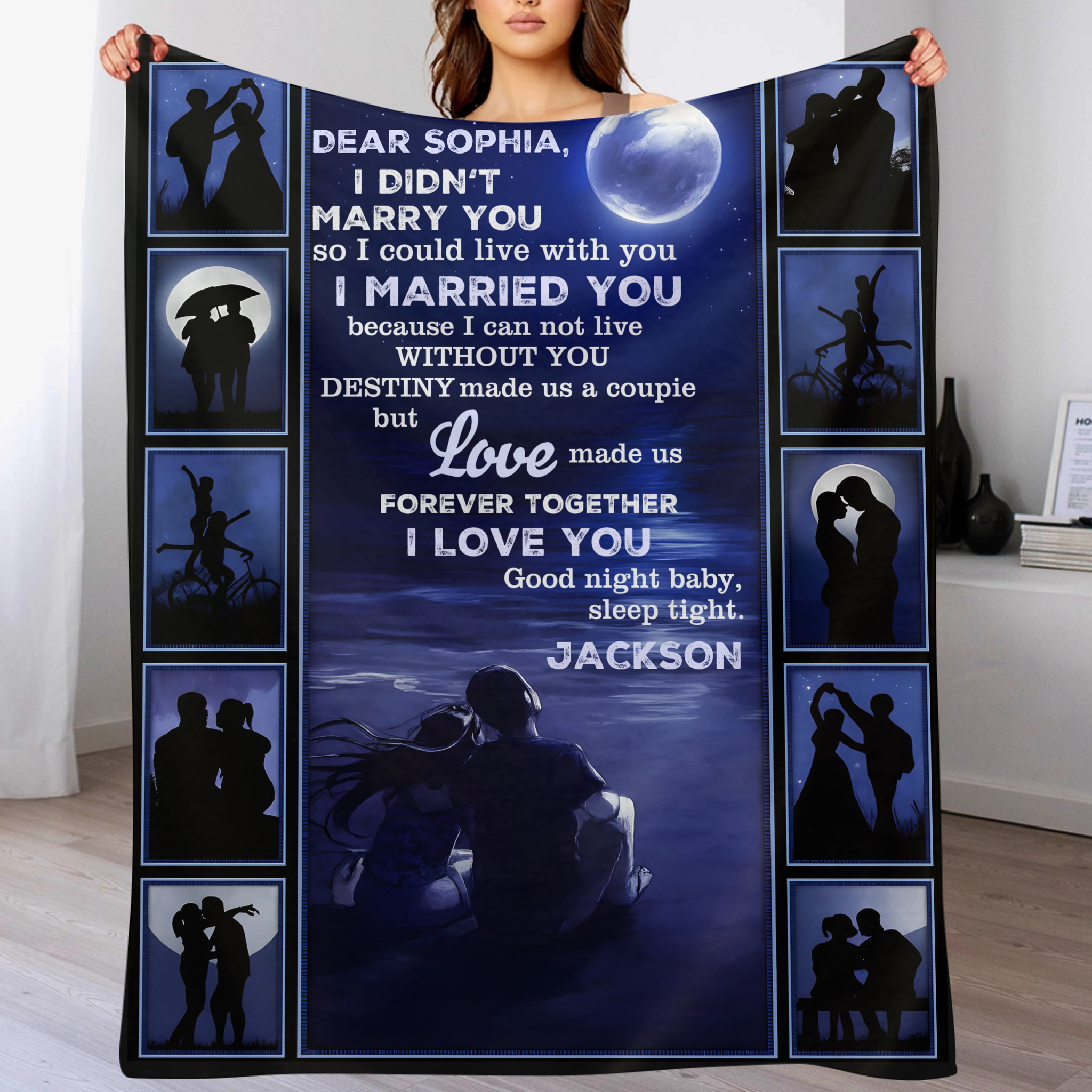 Customized Love Goodnight Blanket - Personalized Name - Gift For Girlfriend, Wife