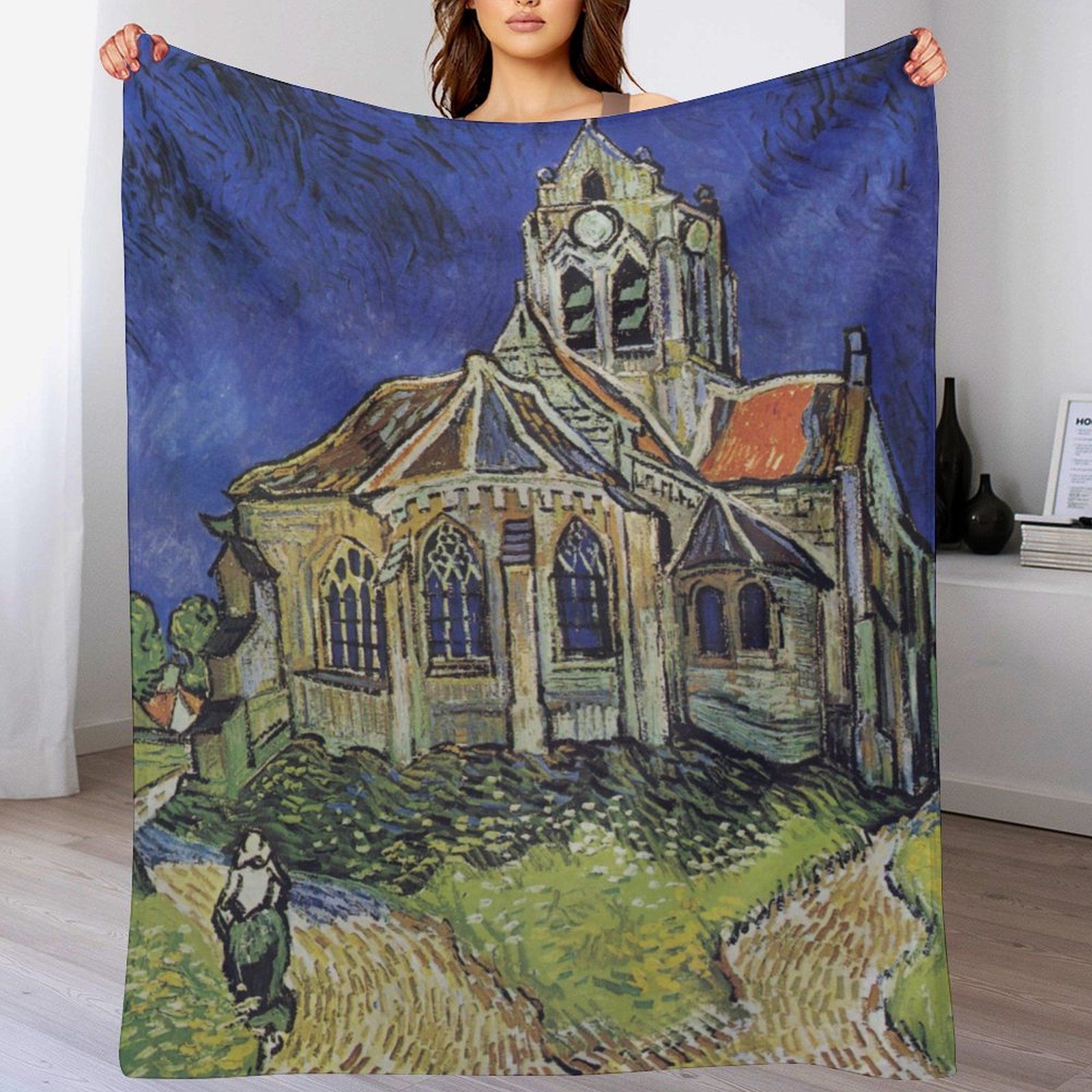 Van Gogh's <The Church at Auvers> Art Blanket: Retro Humanistic Gift for Architectural Art Enthusiasts
