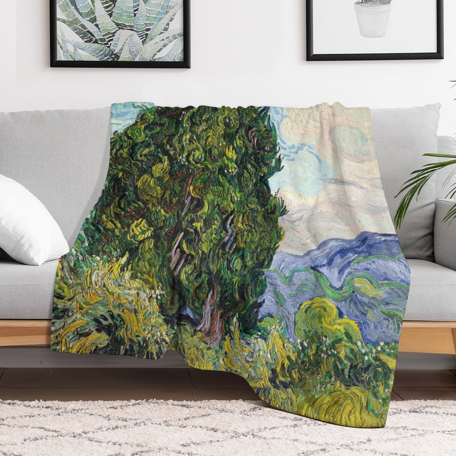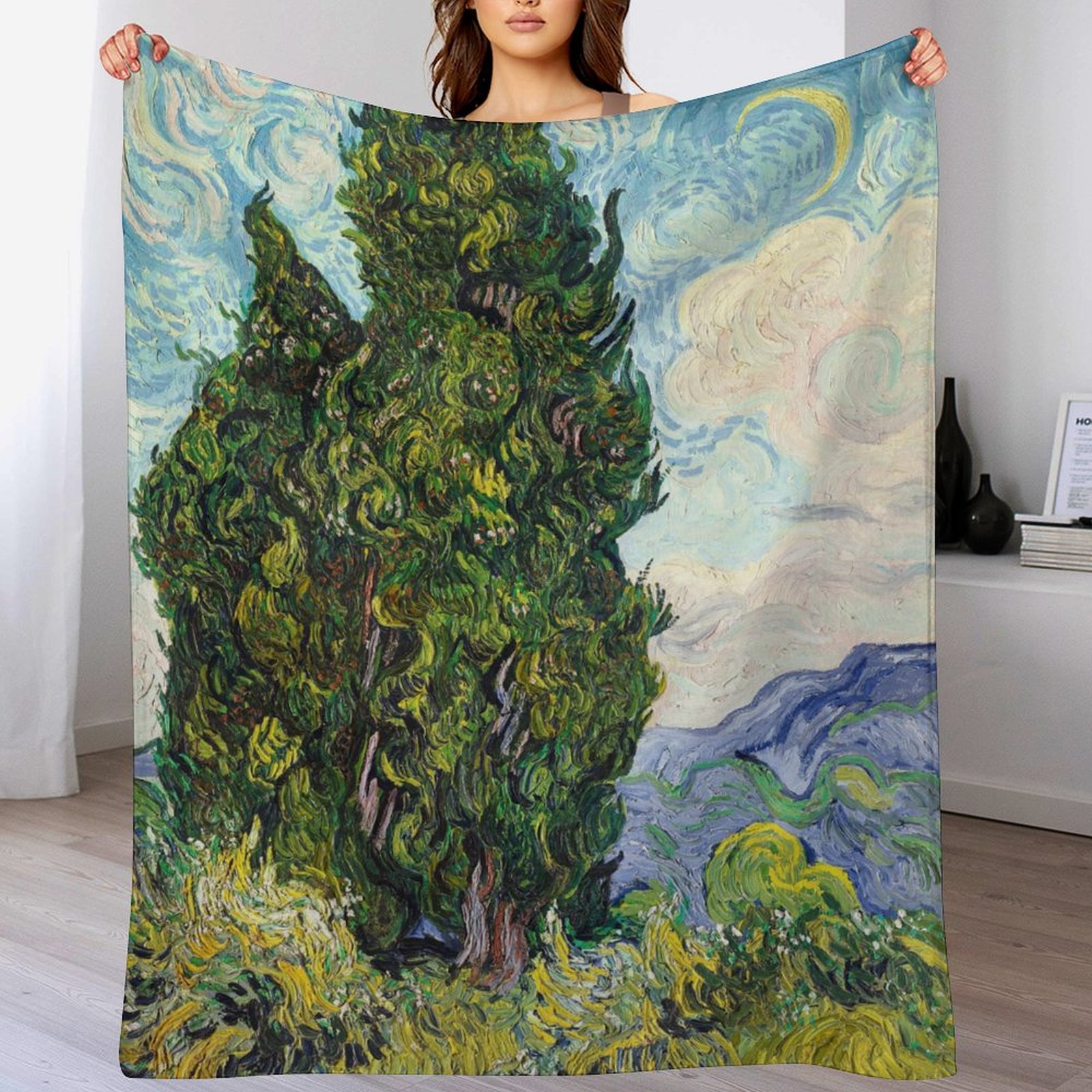 Van Gogh's <Cypresses> Art Blanket: Poetic Gift for Nature Art Enthusiasts
