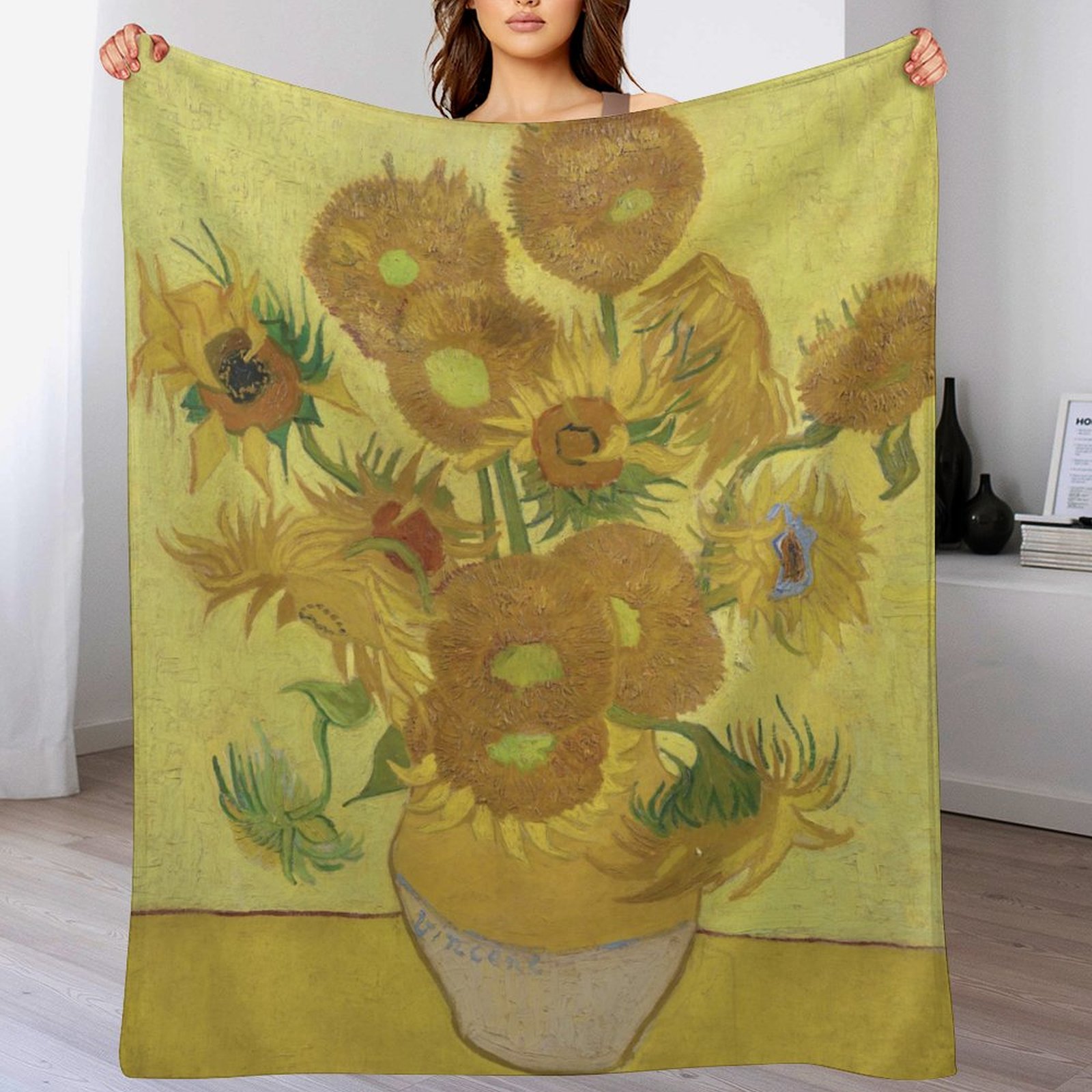Van Gogh's <Vase with Fifteen Sunflowers> Art Blanket: Dynamic Aesthetic Gift for Art Enthusiasts