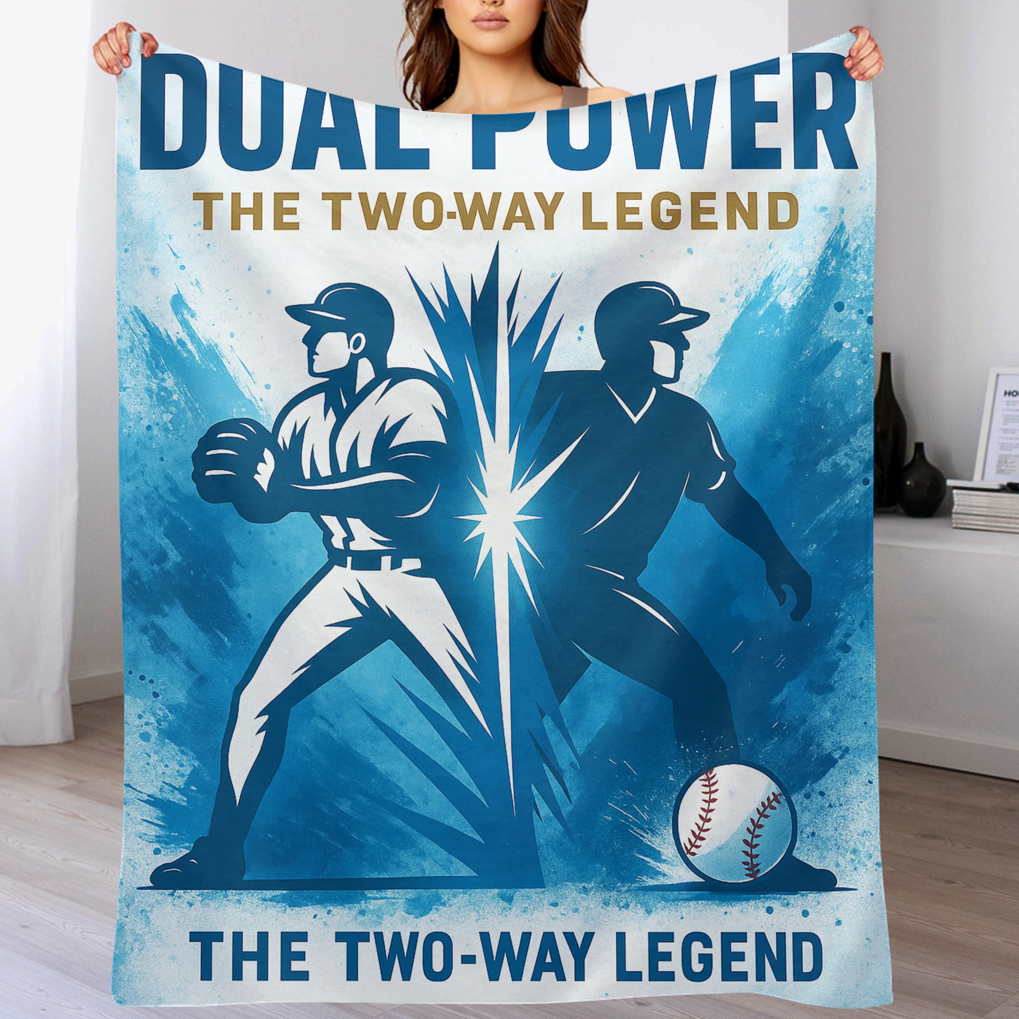 Dual Power Two-Way Legend Blanket – Shohei Ohtani Tribute Baseball Throw – Gift for Fans