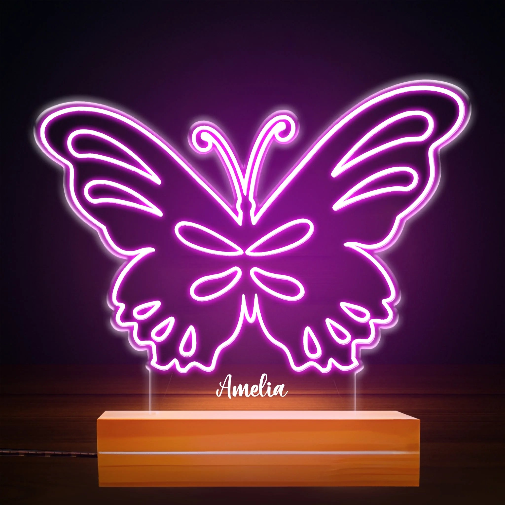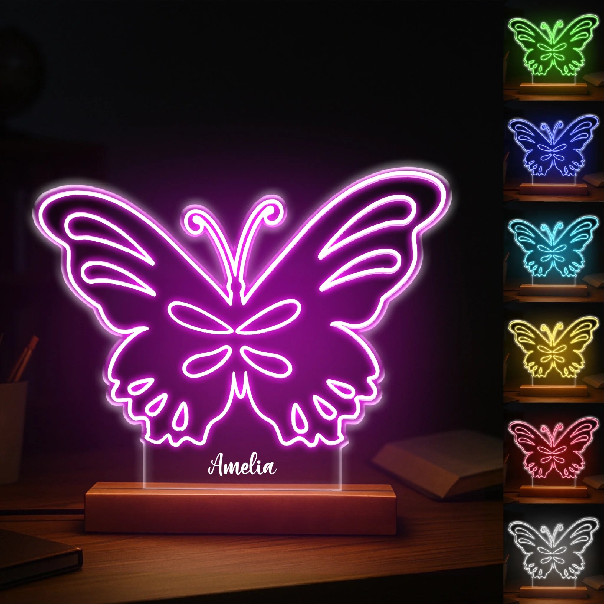 Custom Butterfly 7 Color Changing Night Light - Personalized Kids Name LED Lamp - Gift for Girls Bedroom Decor