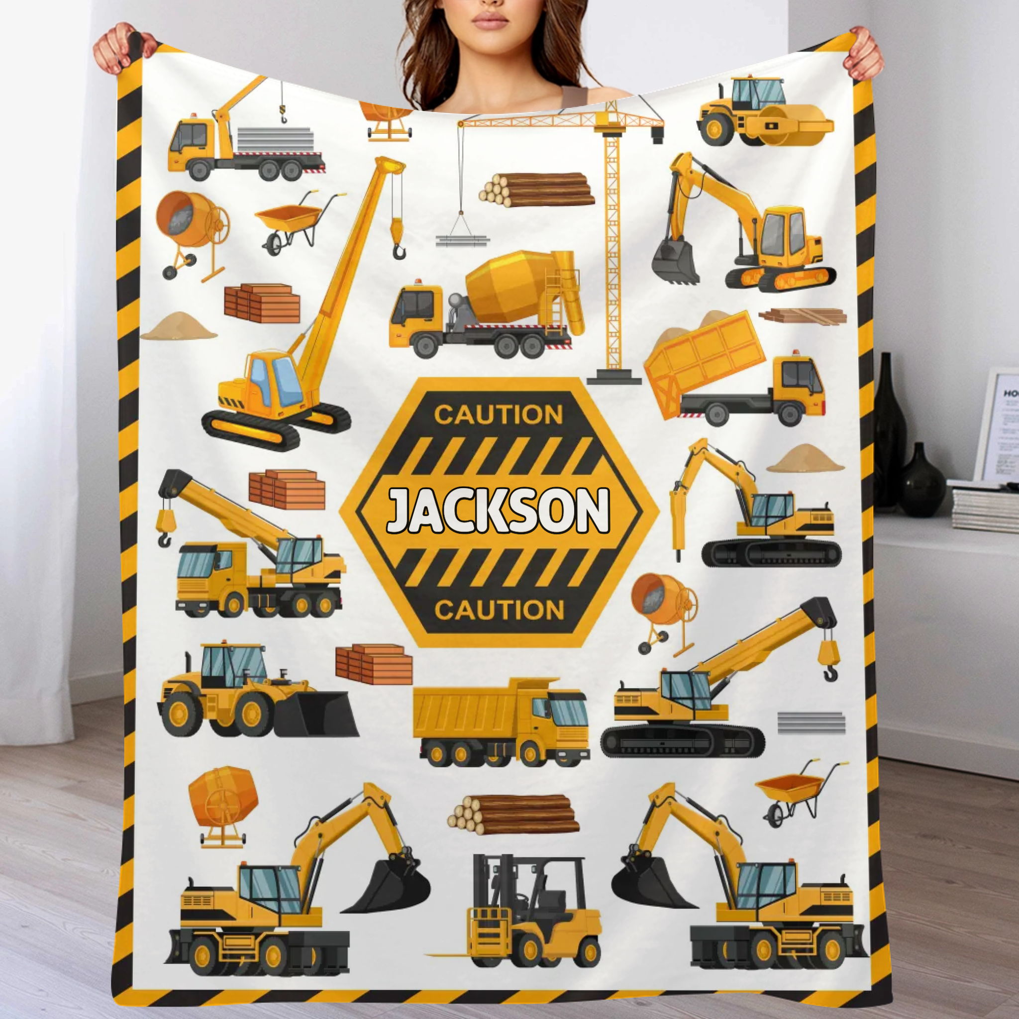 Customised Construction Excavator Style - Personalized Name Truck Patterns Blanket - A Gift for Child,Friend