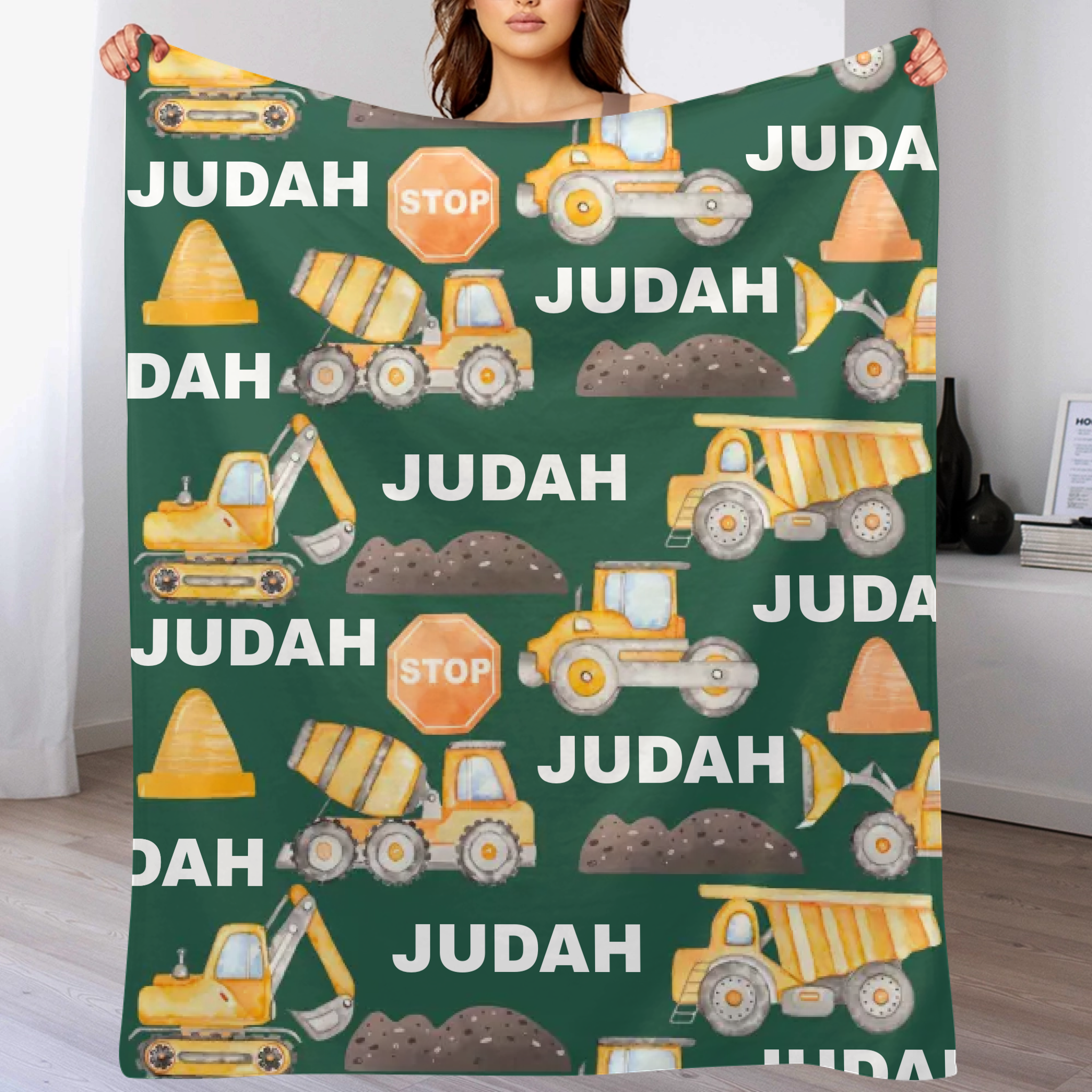 Construction Truck Site Personalized Name Custom Blanket Gift for Kids