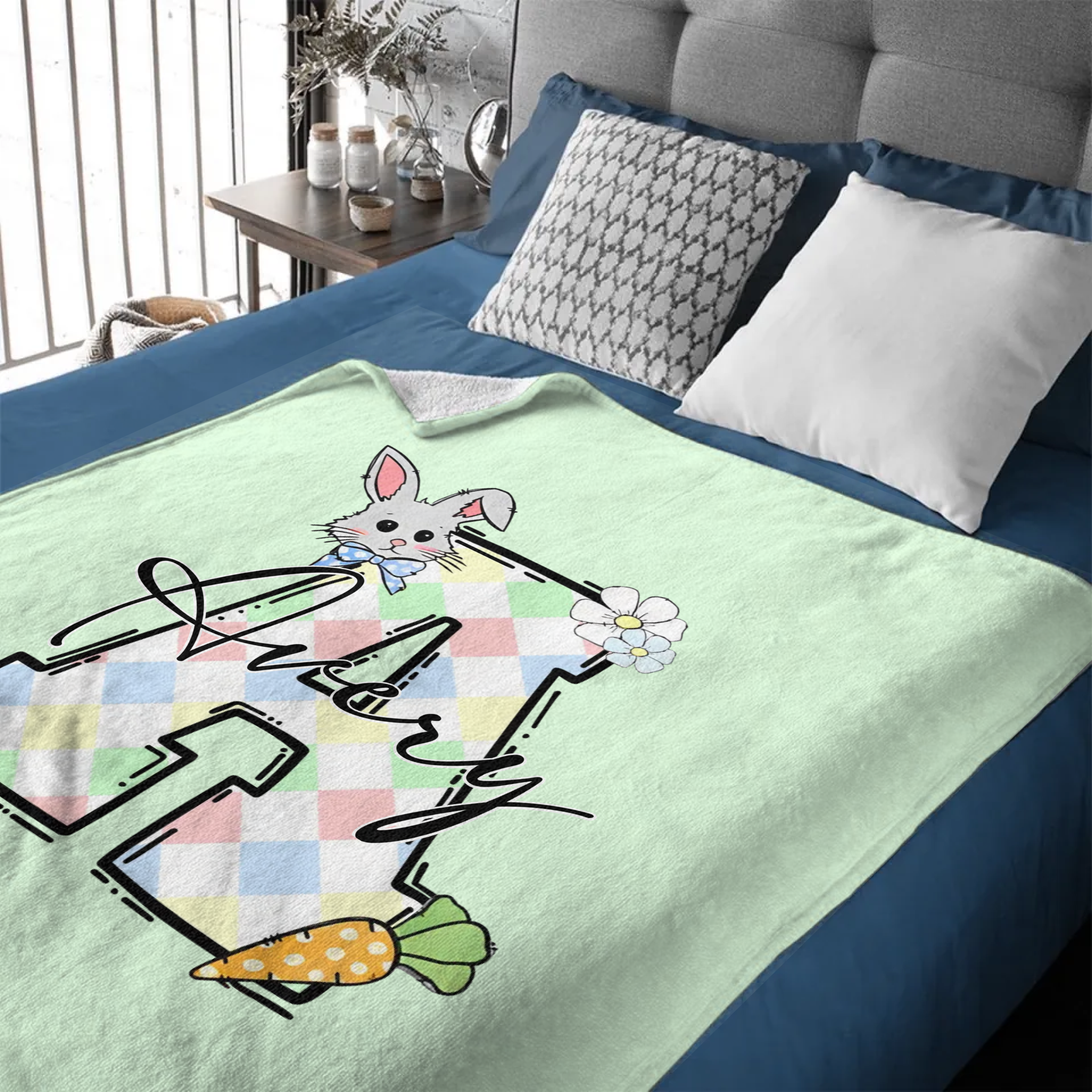 Custom Bunny Alphabet Blanket - Personalized Rabbit Initial Name Throw - Gift for Kids & Girls