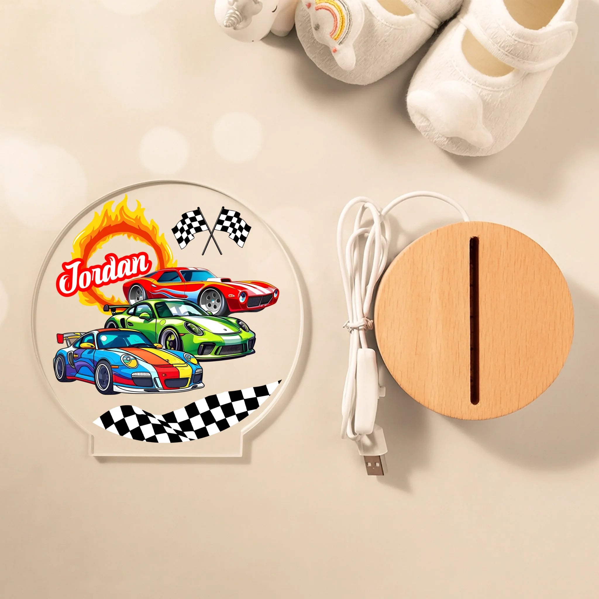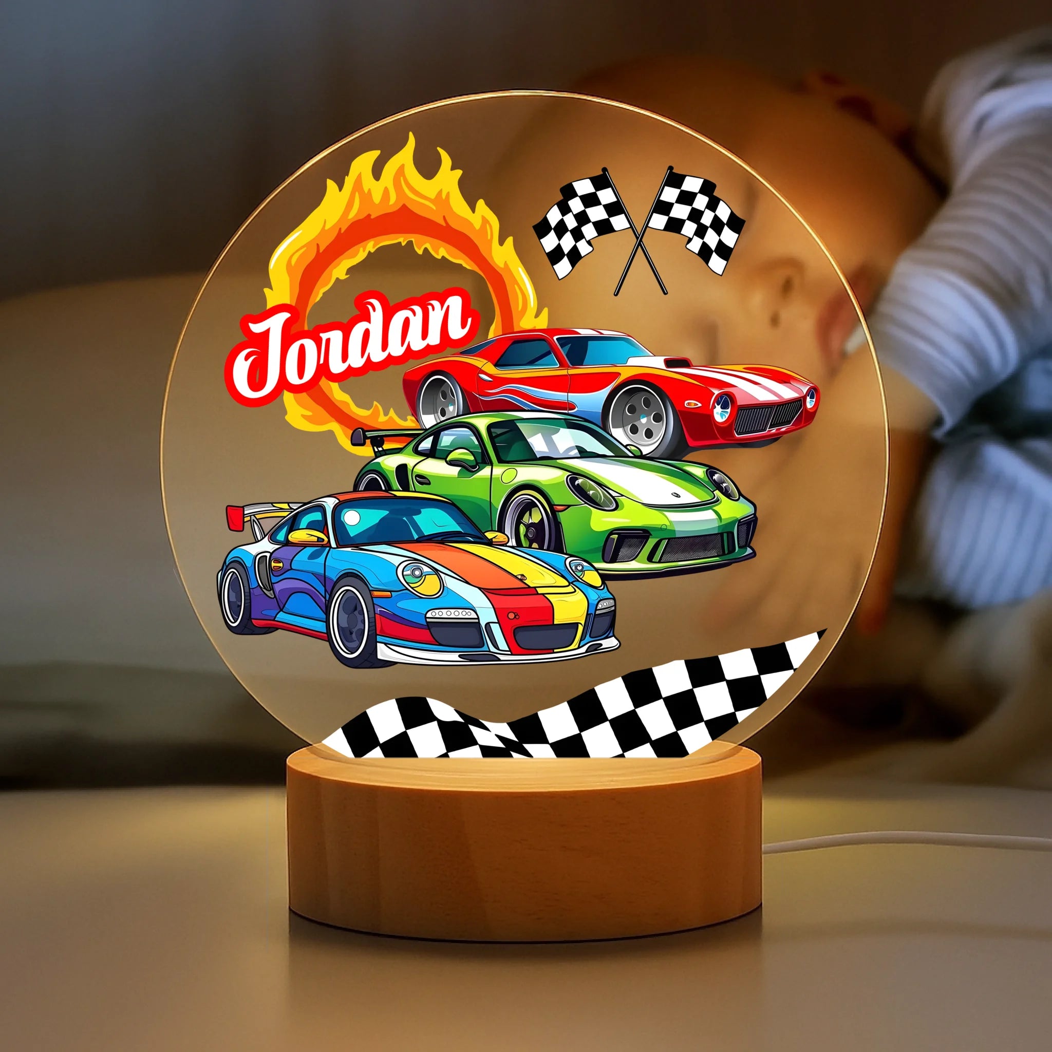 Custom Car Themed Night Light - Personalized Racing LED Lamp - Gift for Children Bedroom
