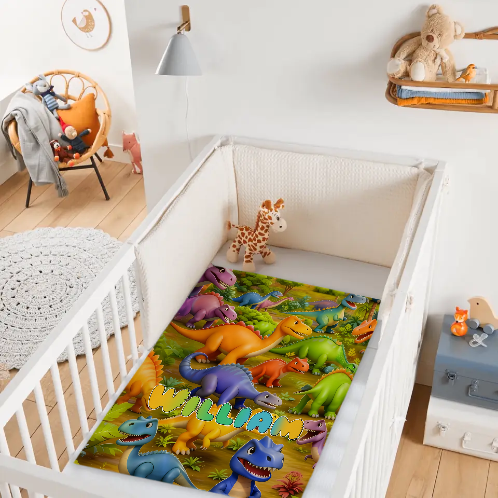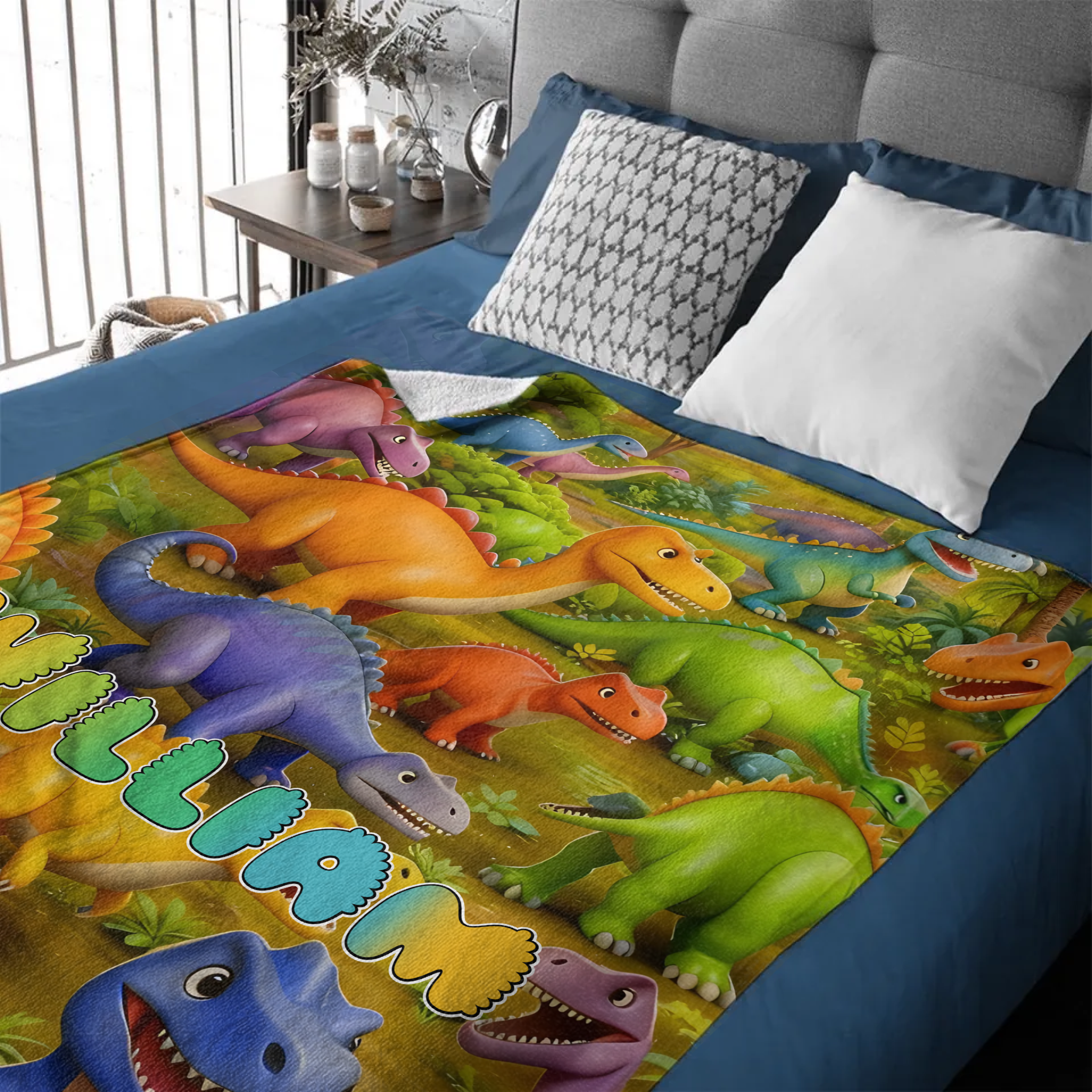 Custom Dinosaur World Blanket – Personalized Cartoon Dino Throw – Gift for Kids & Boys