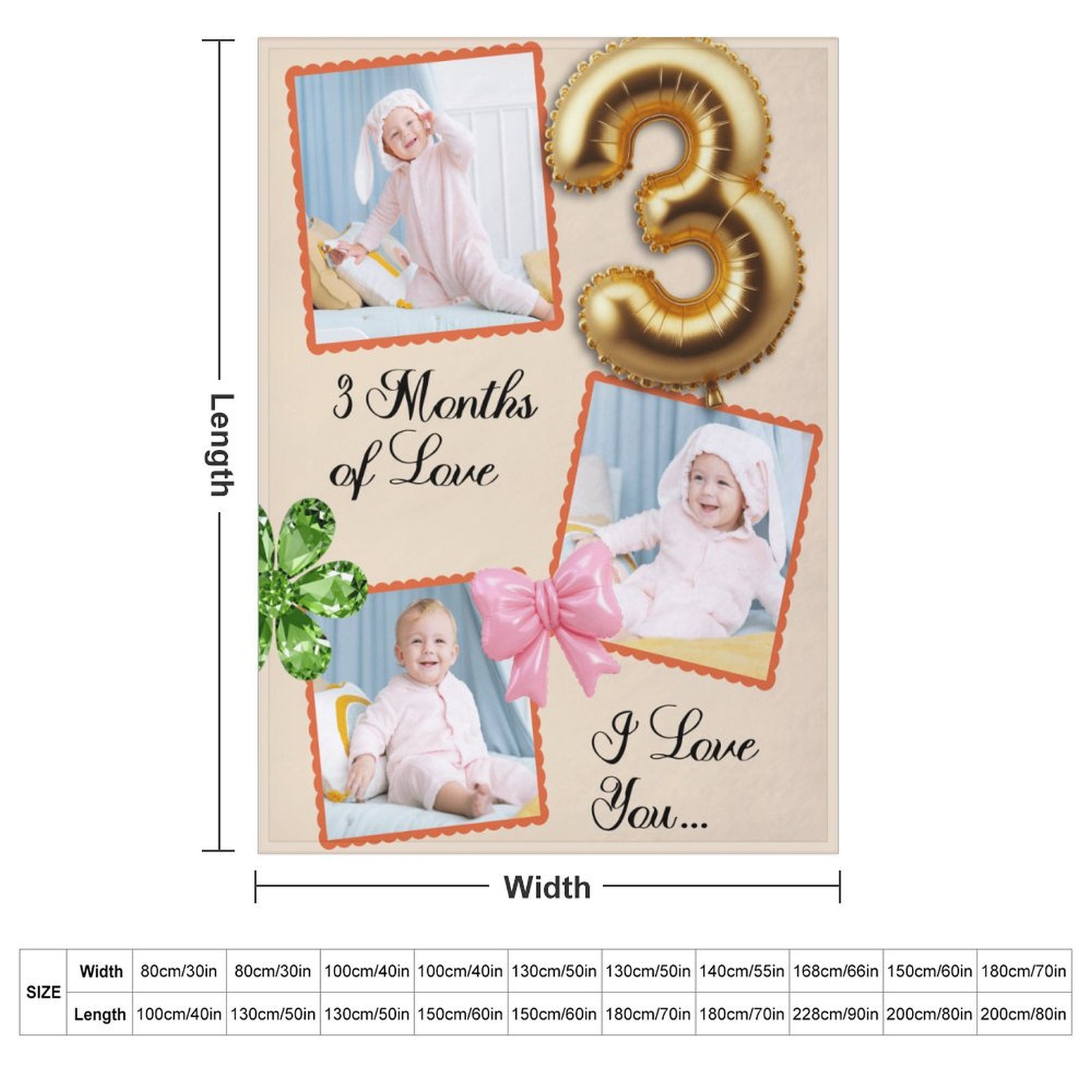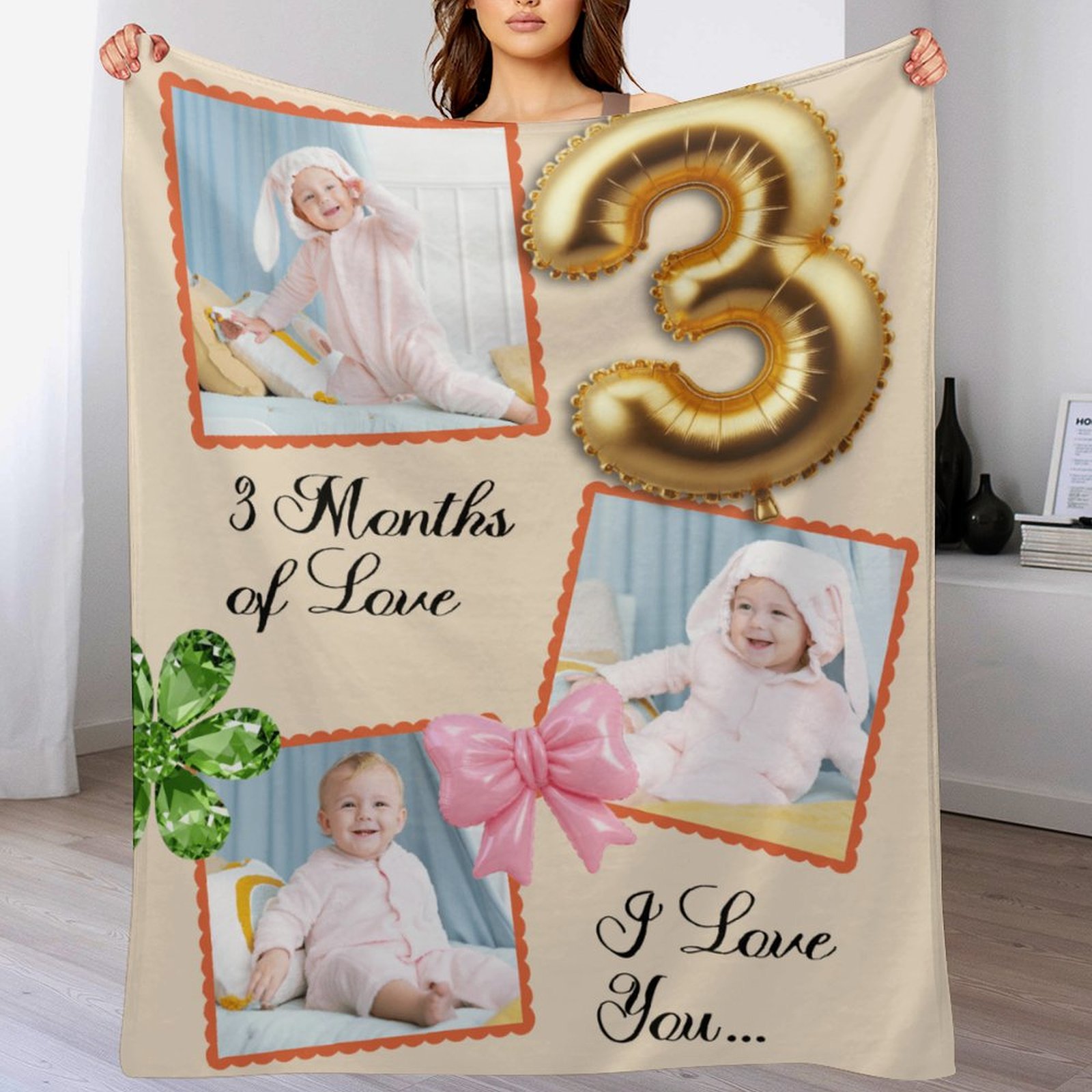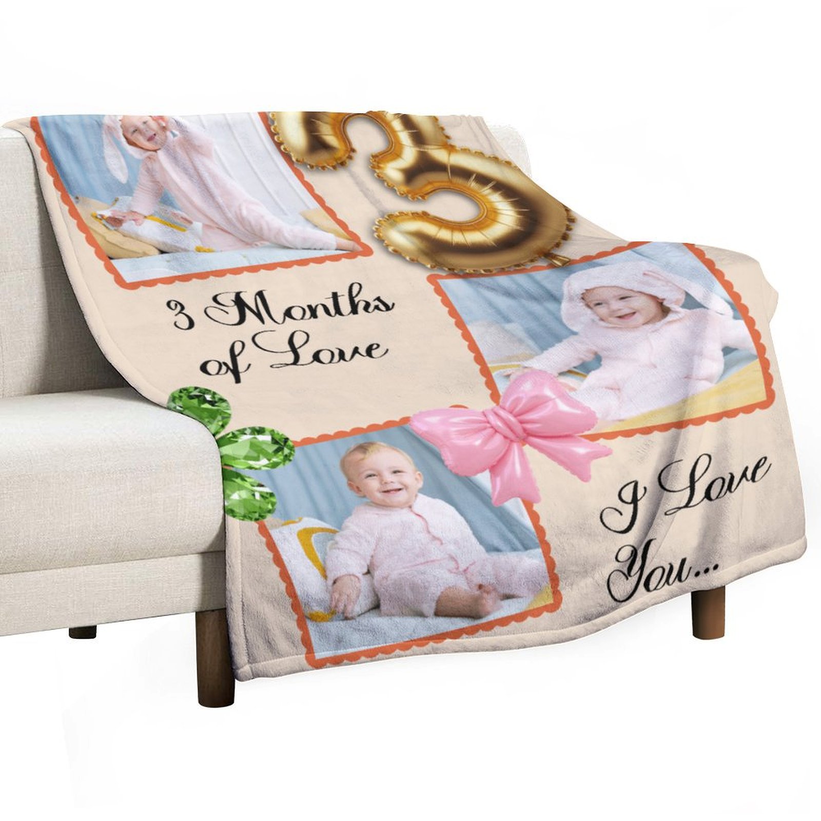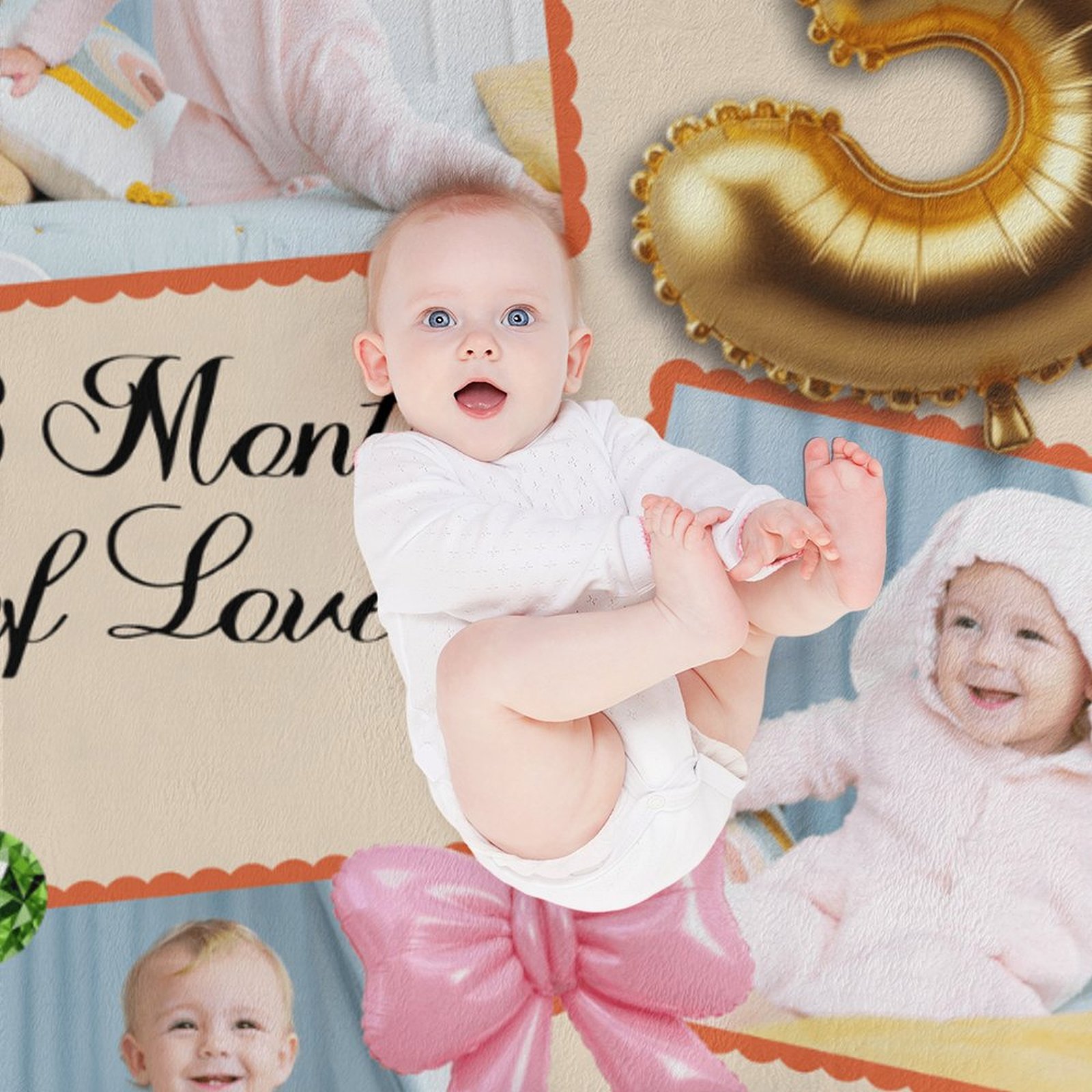 Custom Baby Milestone Blanket – Personalized 3 Months of Love Photo Collage Throw – Gift for New Parents