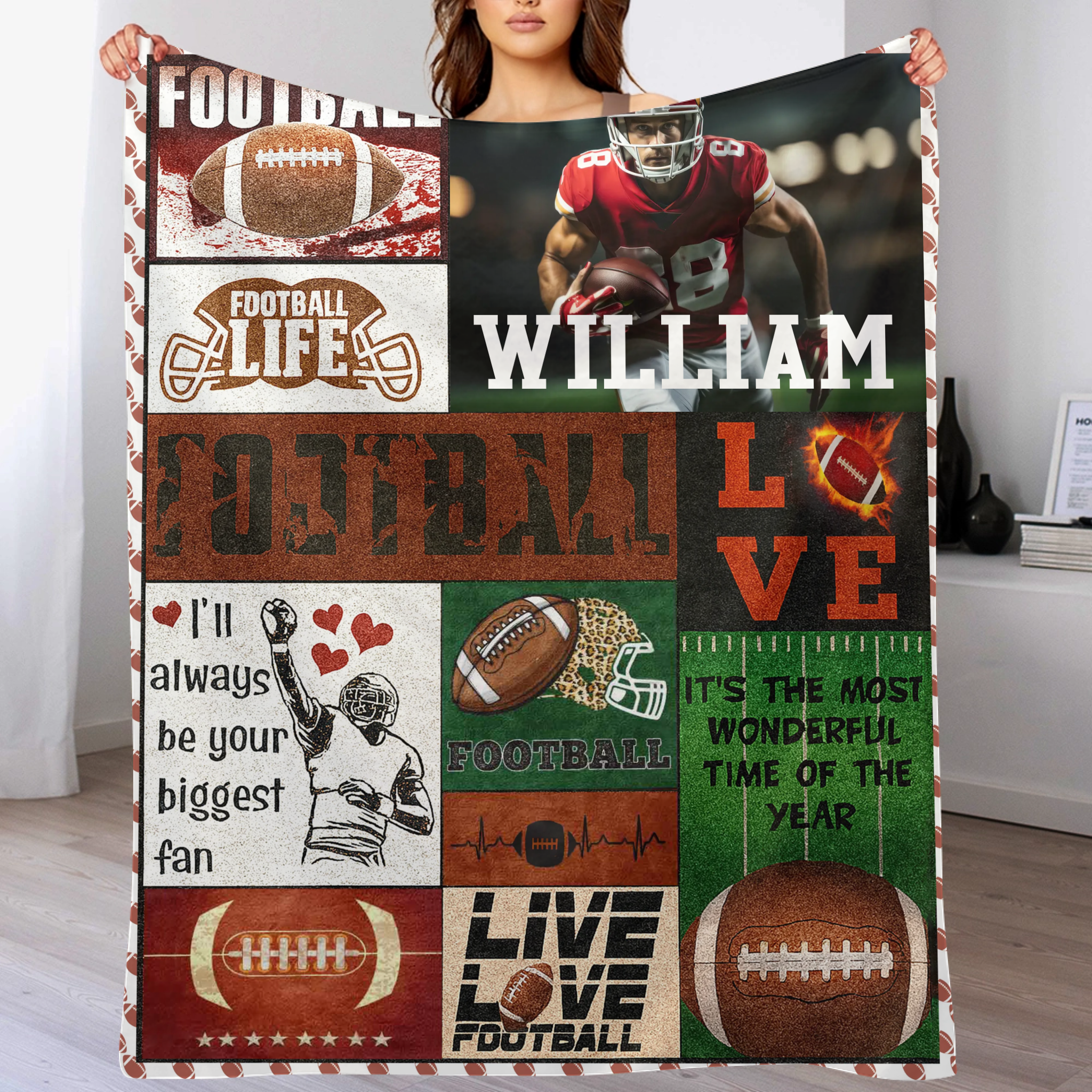 Custom Football Life Blanket - Personalized Sports Throw with Football Design - Gift for Football Fans