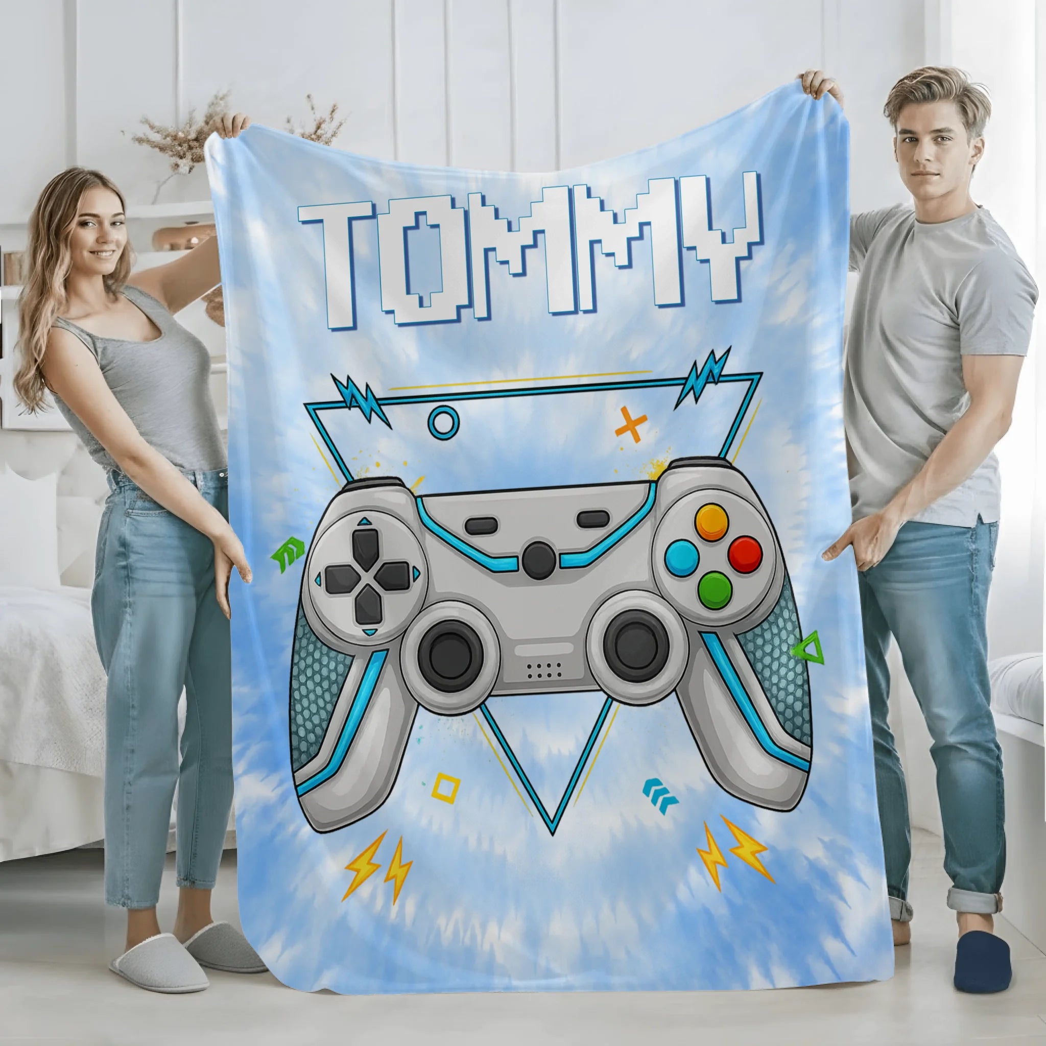 Custom Gaming Blanket - Personalized Tie Dye Gamepad Throw with Name - Gift for Boys Girls Teen Video Game Lovers