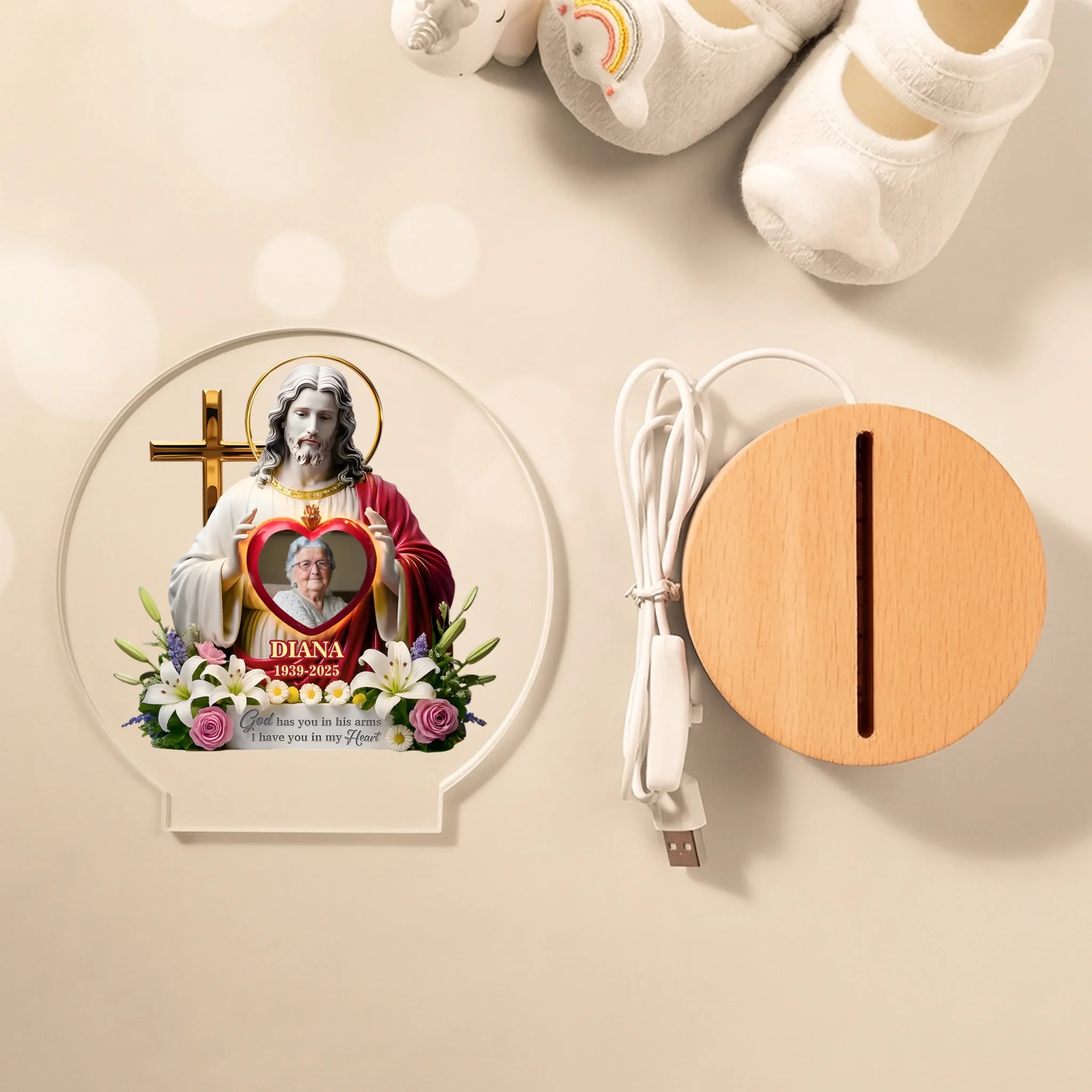 Custom Photo Acrylic Night Light - Personalized Christmas Memorial Sympathy LED Lamp - Until Forever, You’re With Me