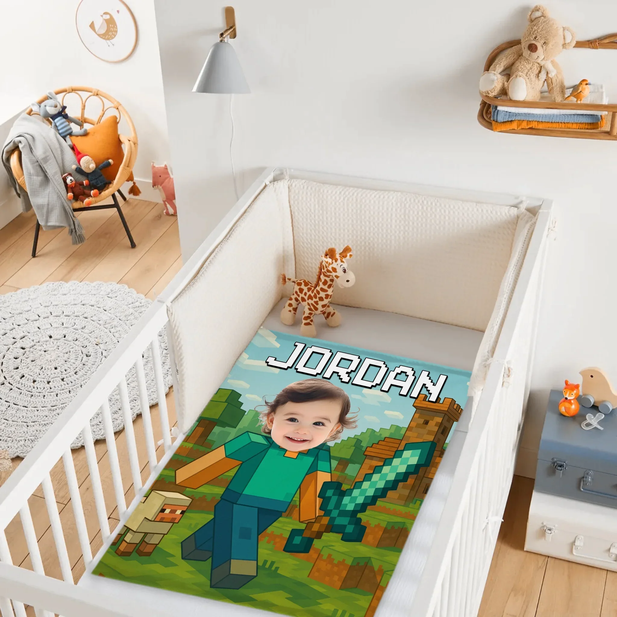 Custom Pixel Gamer Blanket - Personalized Minecraft Style Throw Blanket - Gift for Children