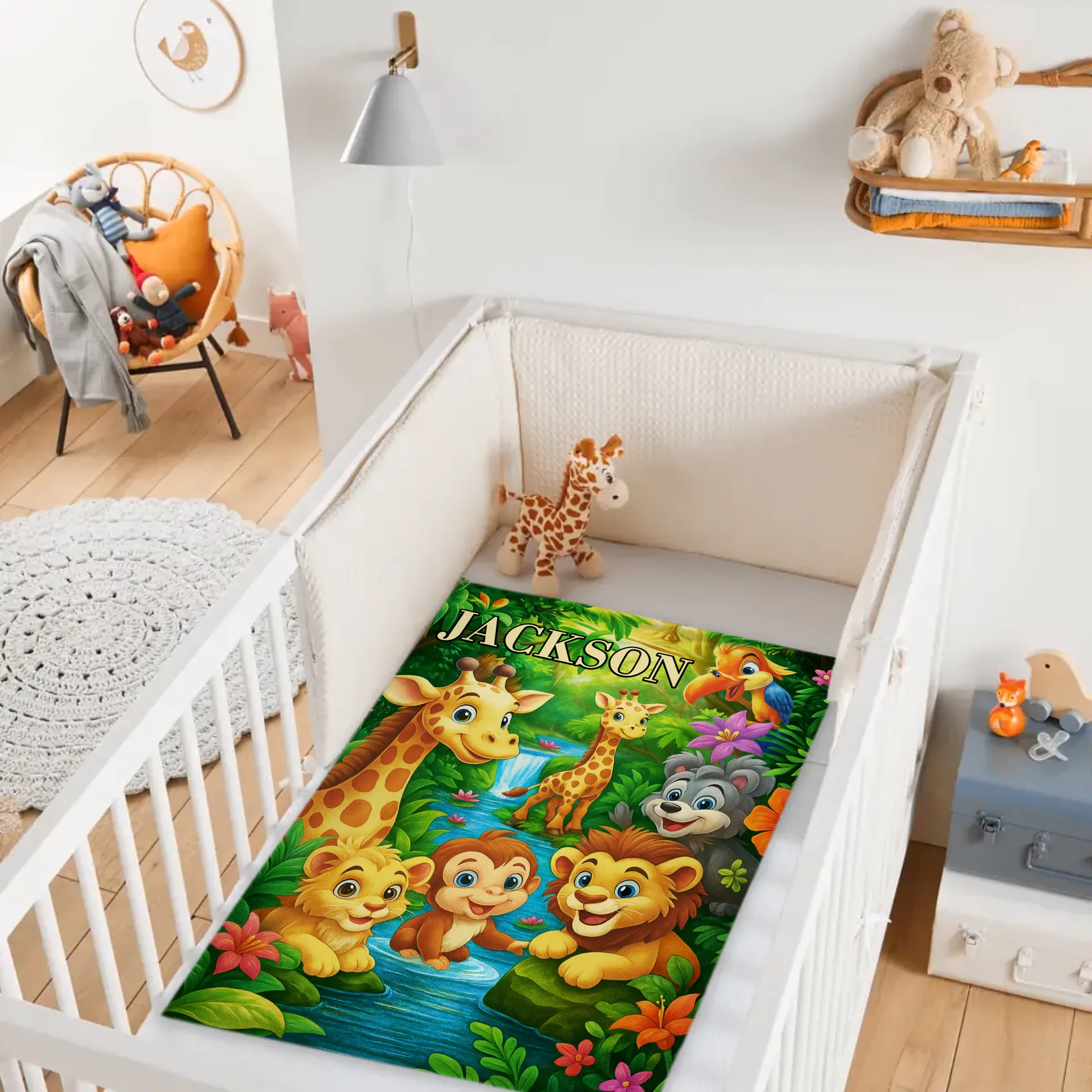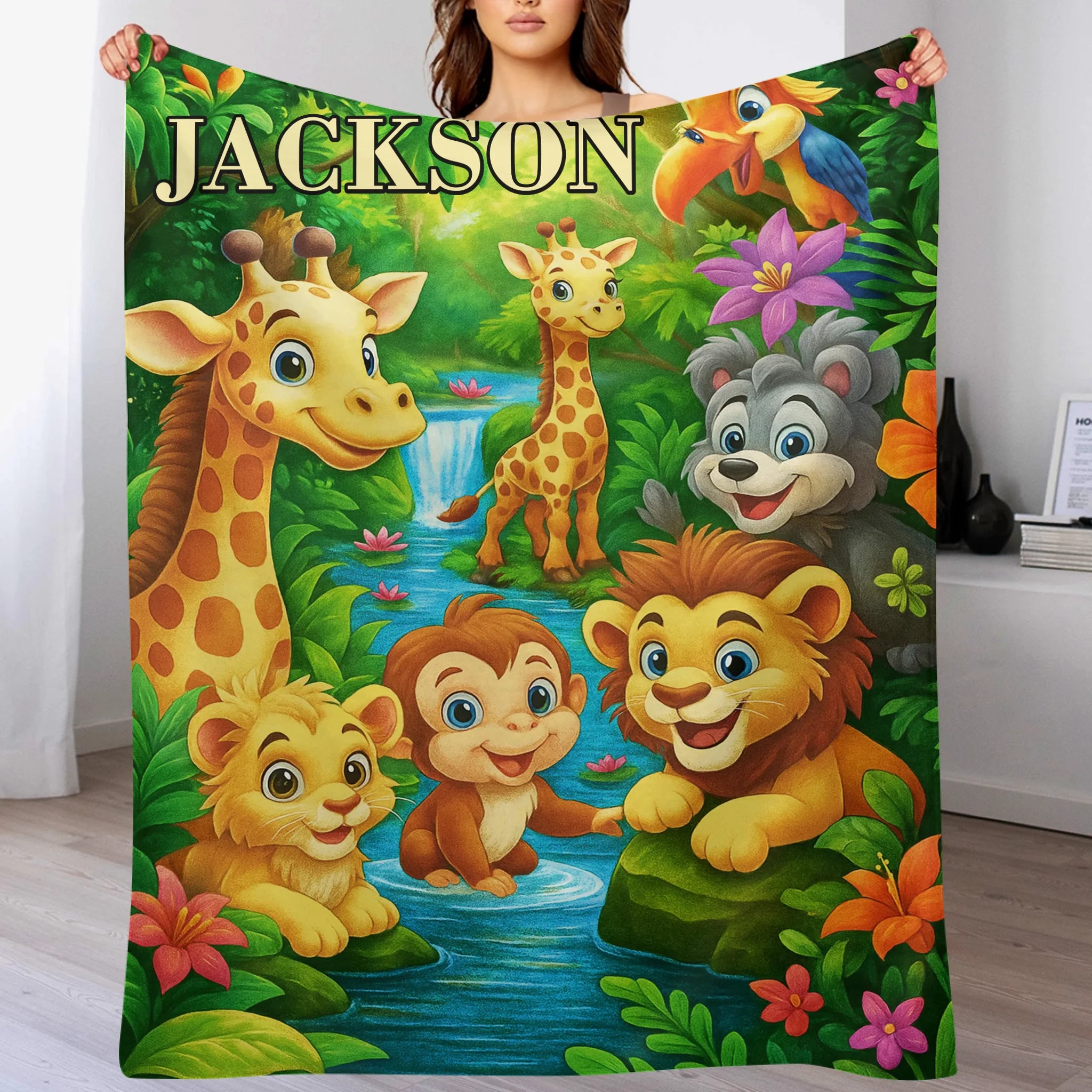 🌳Customized Animal Jungle Blanket - Personalized Name - Gift For Kids, Children