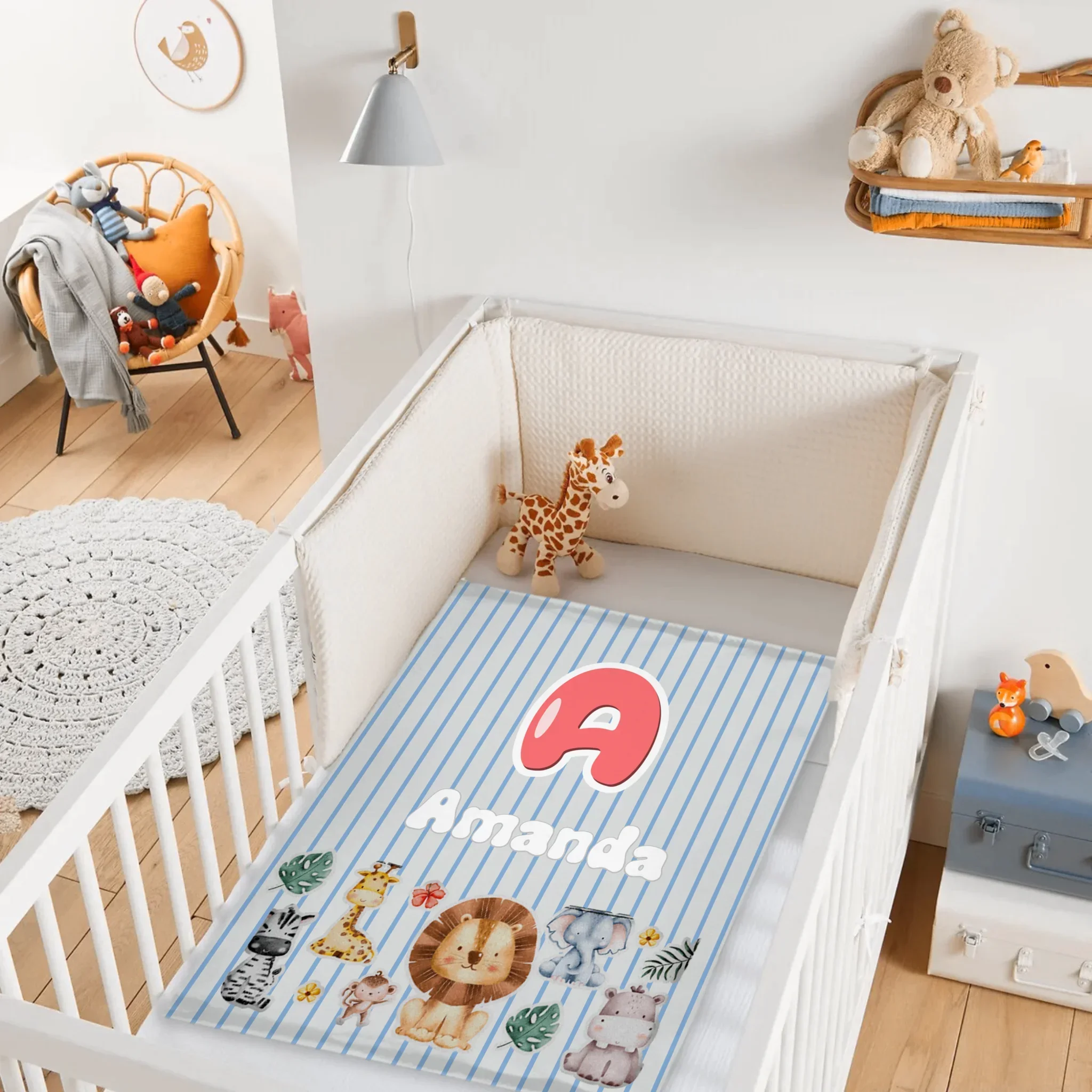 Customized Animal Pattern Colorful Vertical Stripe Blanket - Personalized Name - Gifts For Child