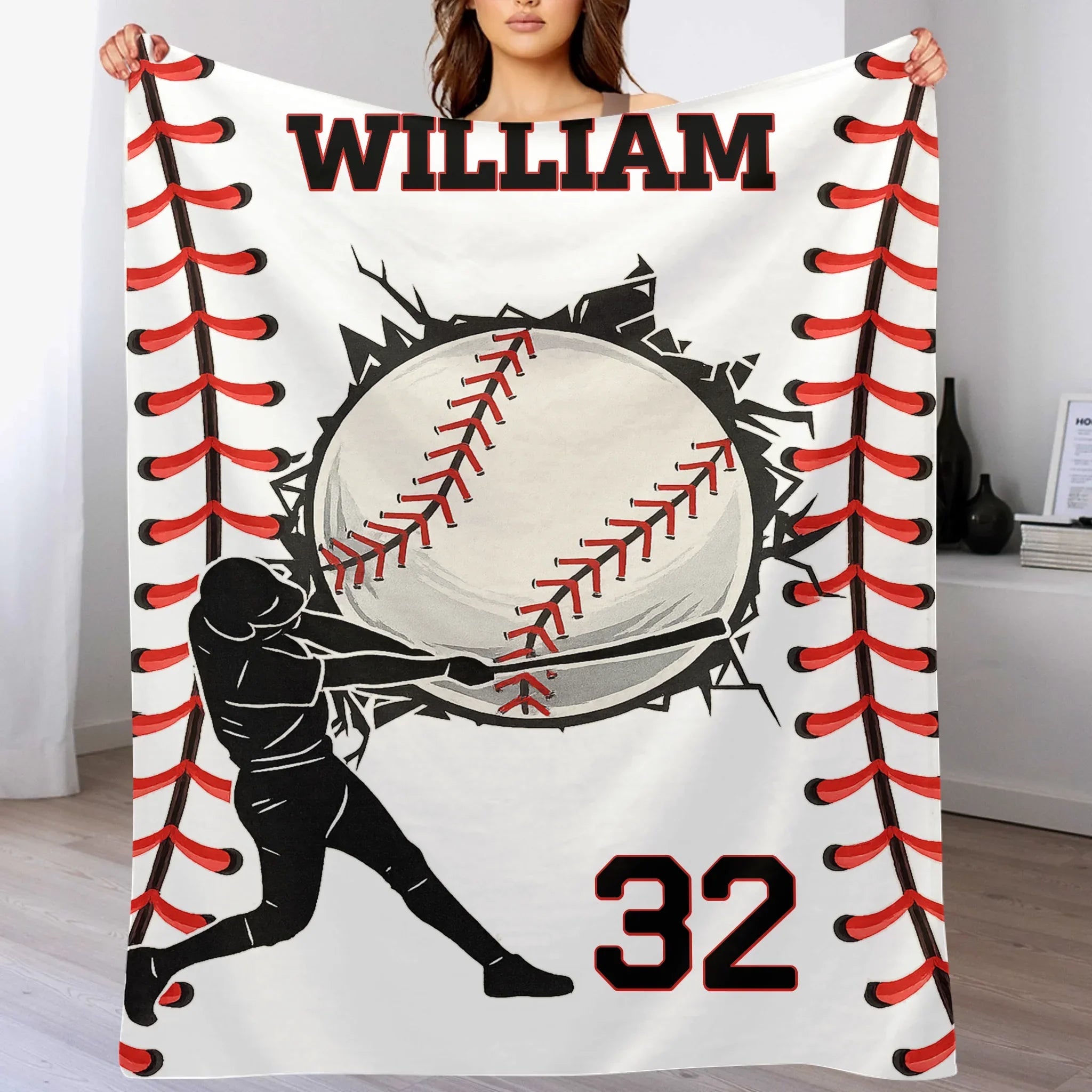 Customized Baseball Design Soft Blanket - Personalized Color And Name - Gifts for Athlete, Baseball Enthusiast