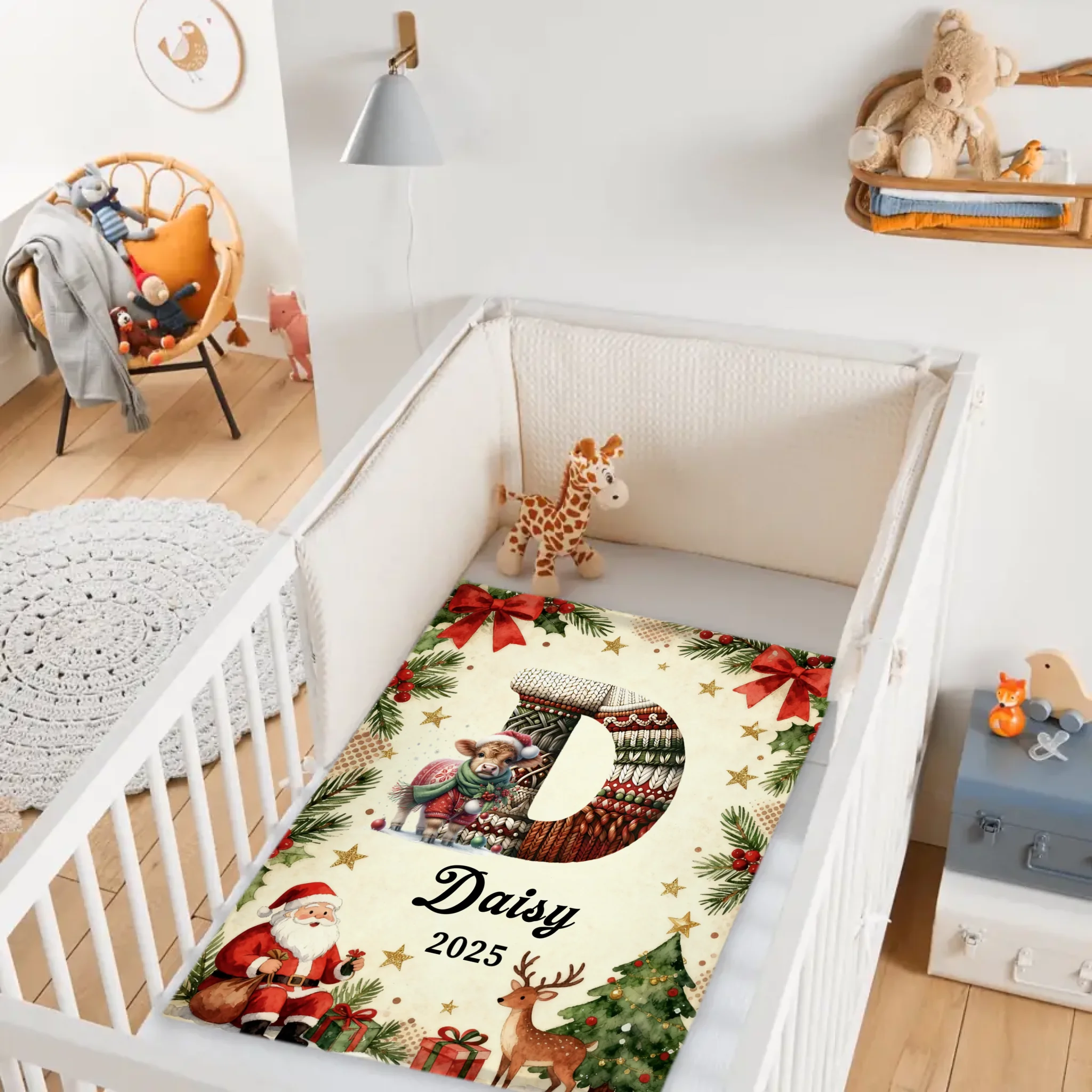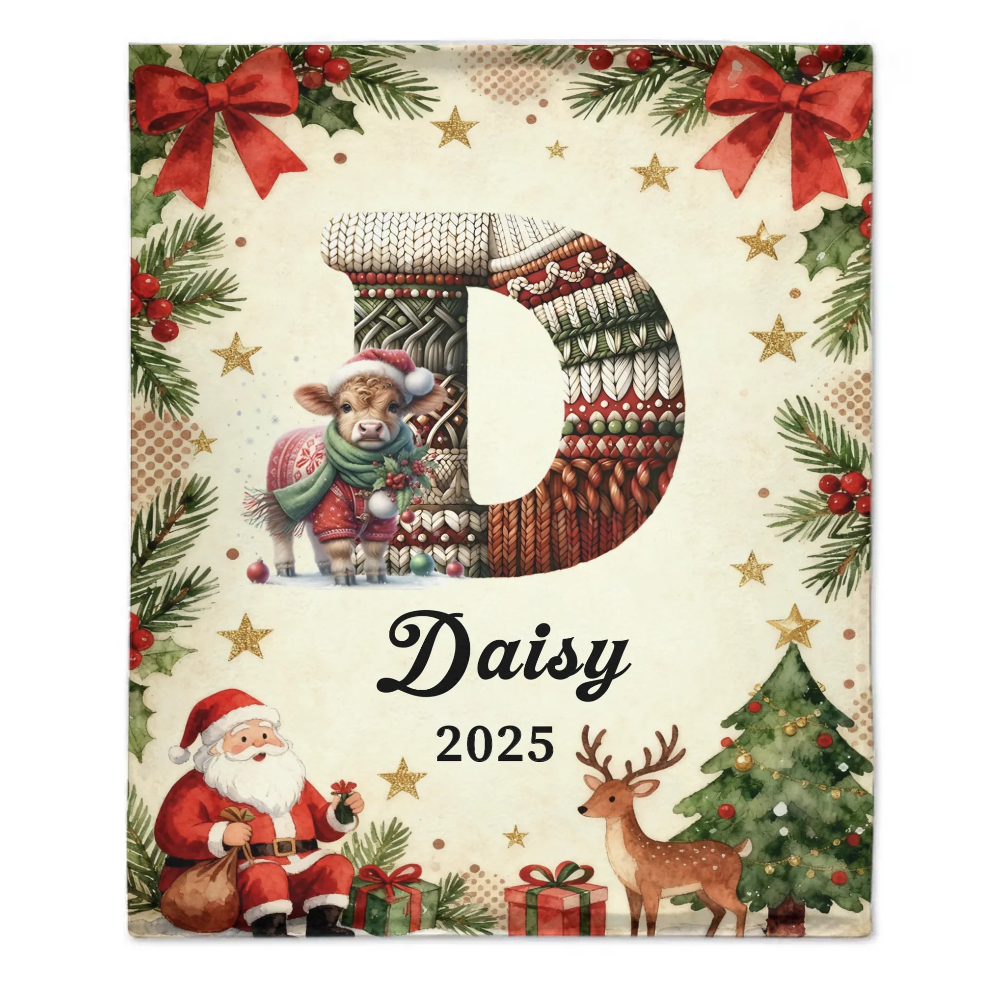 Customized Cute Animals Knitted Letter Design Blanket - Personalized Name And Initial Letter - Christmas Gift For Family, Friends