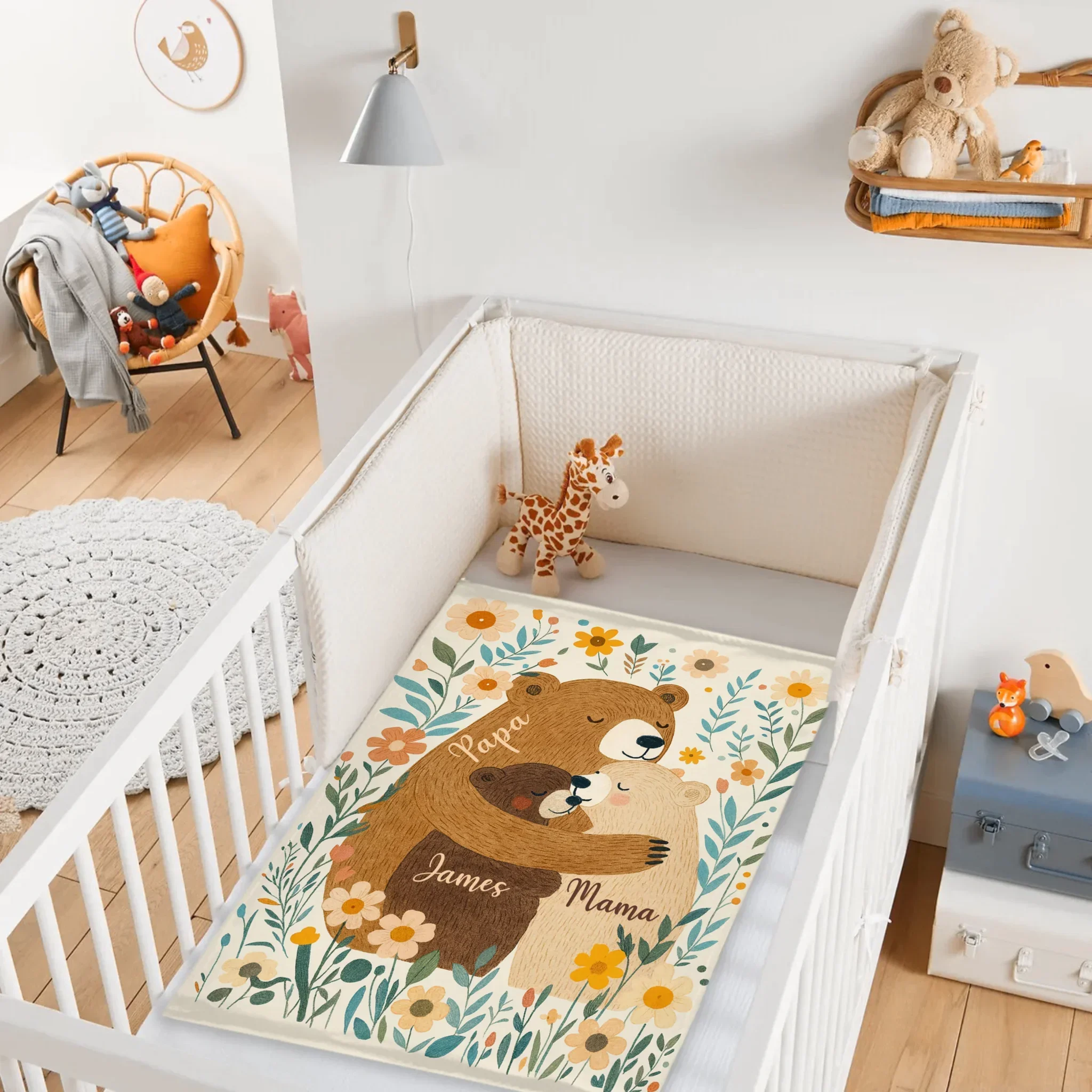 Customized Family Bear Flower Blanket - Personalized Name - Warm Gifts For Family Members
