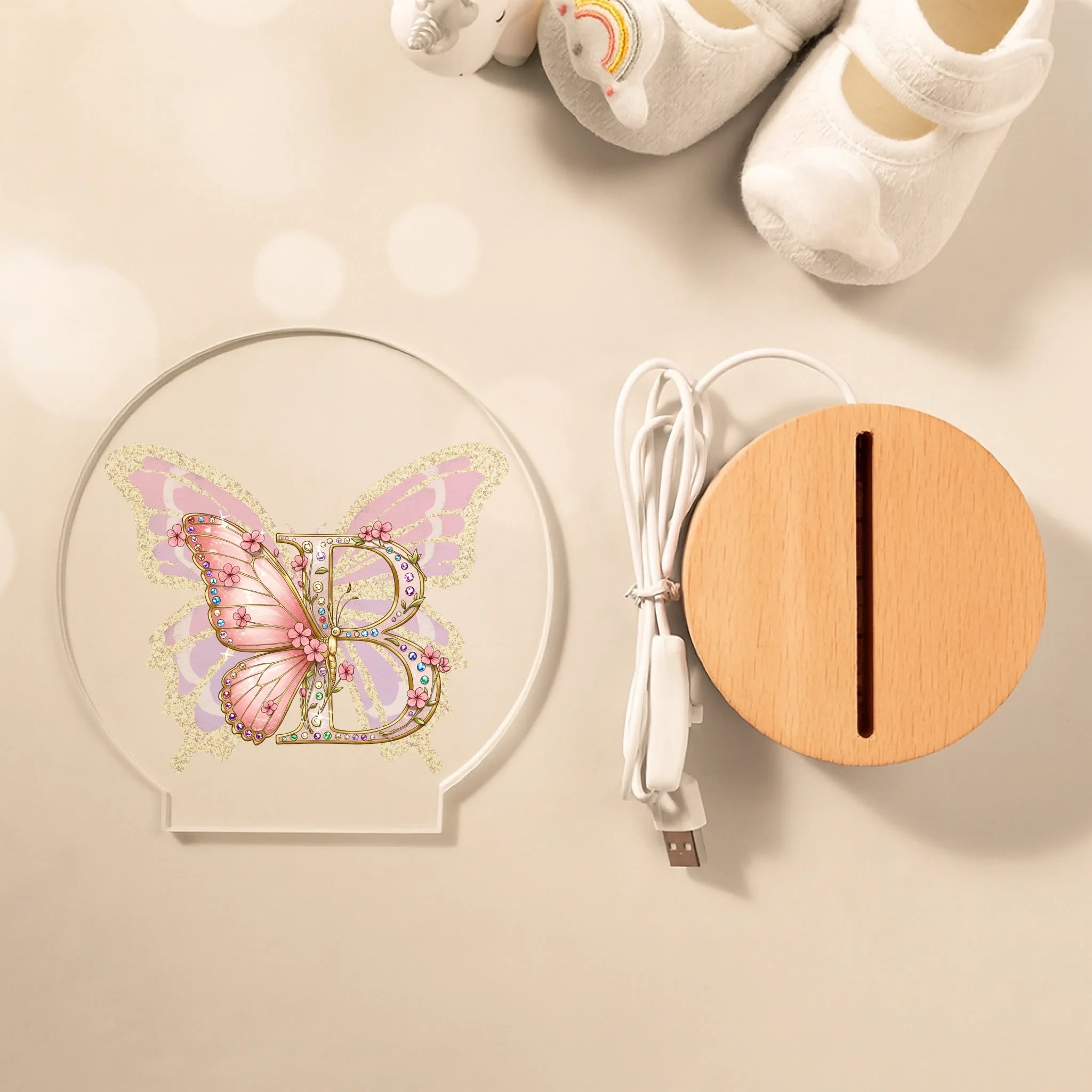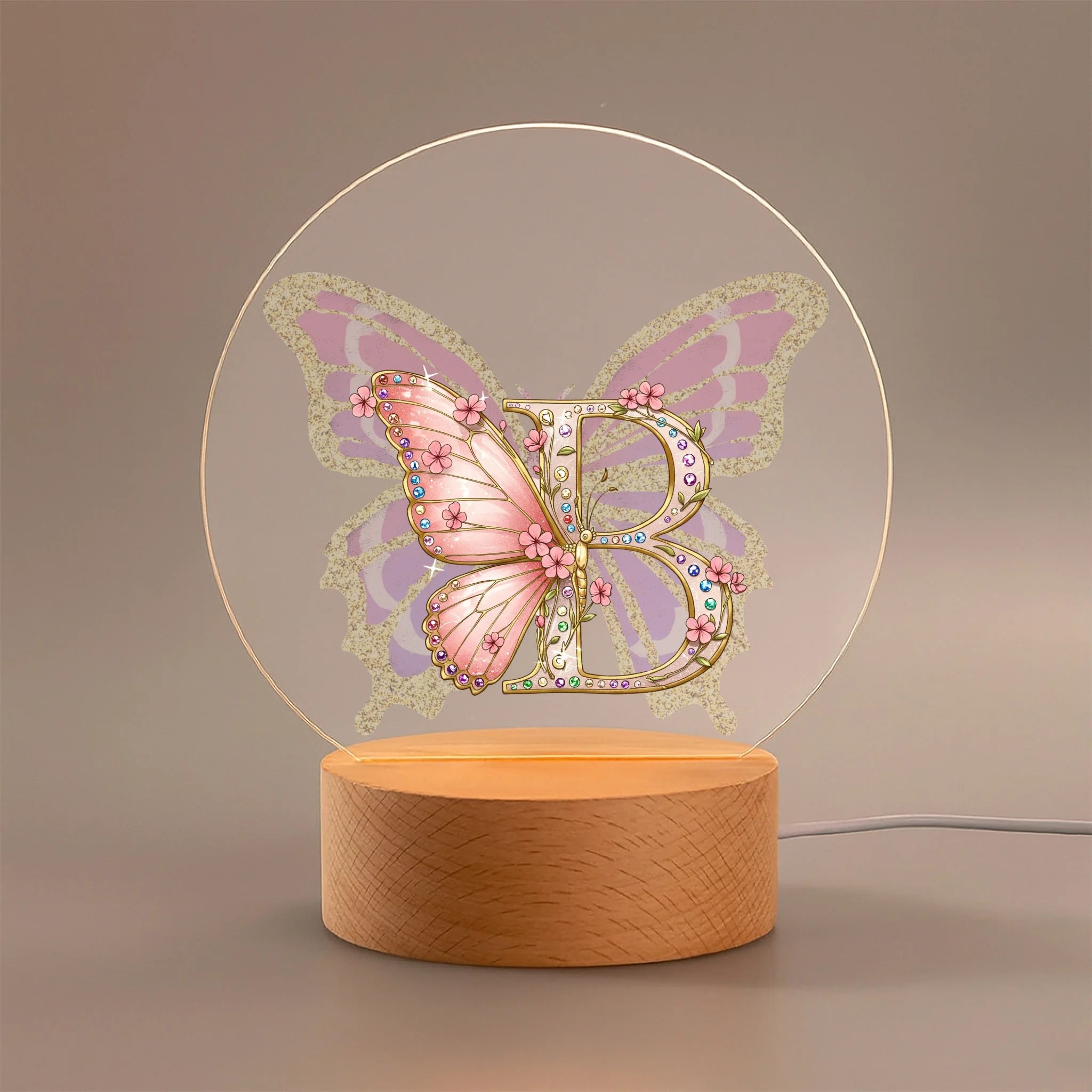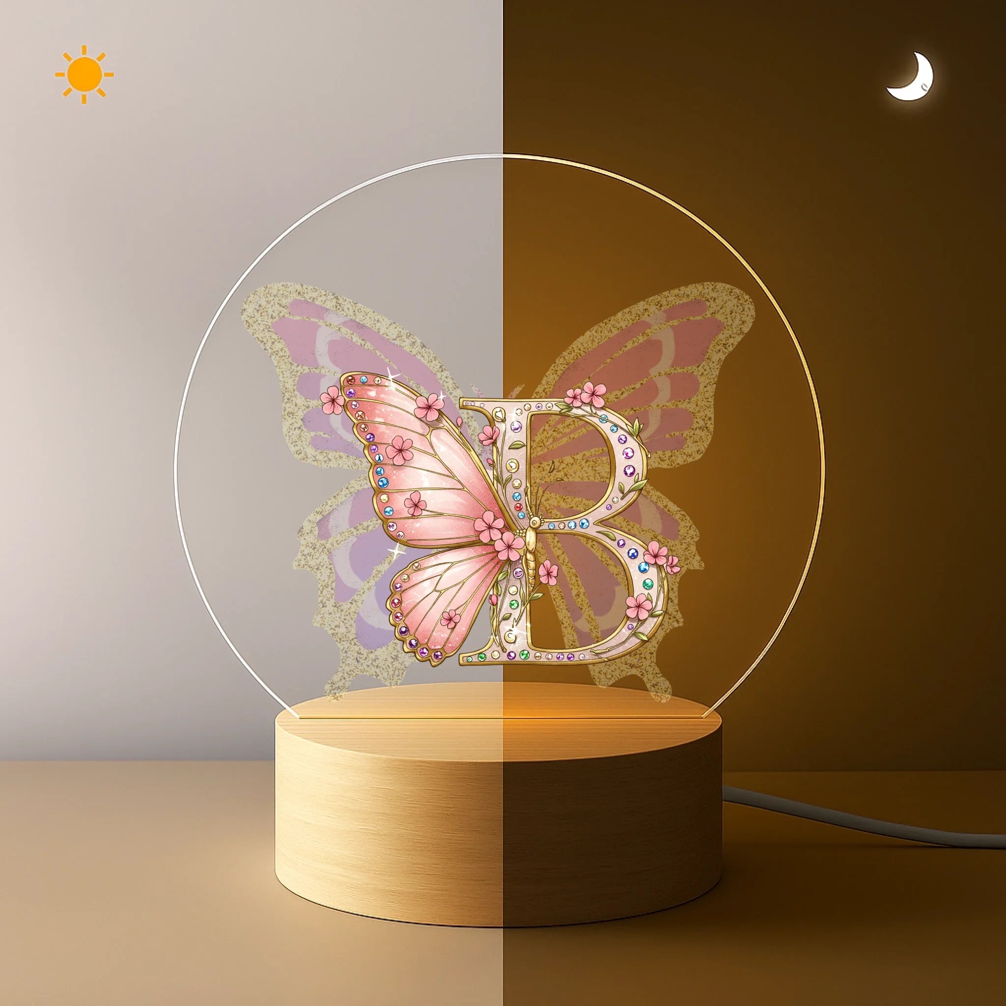 Gleaming Butterfly Customized Night Light - Personalized Initial – Gift for Kids, Children, Girl, Baby