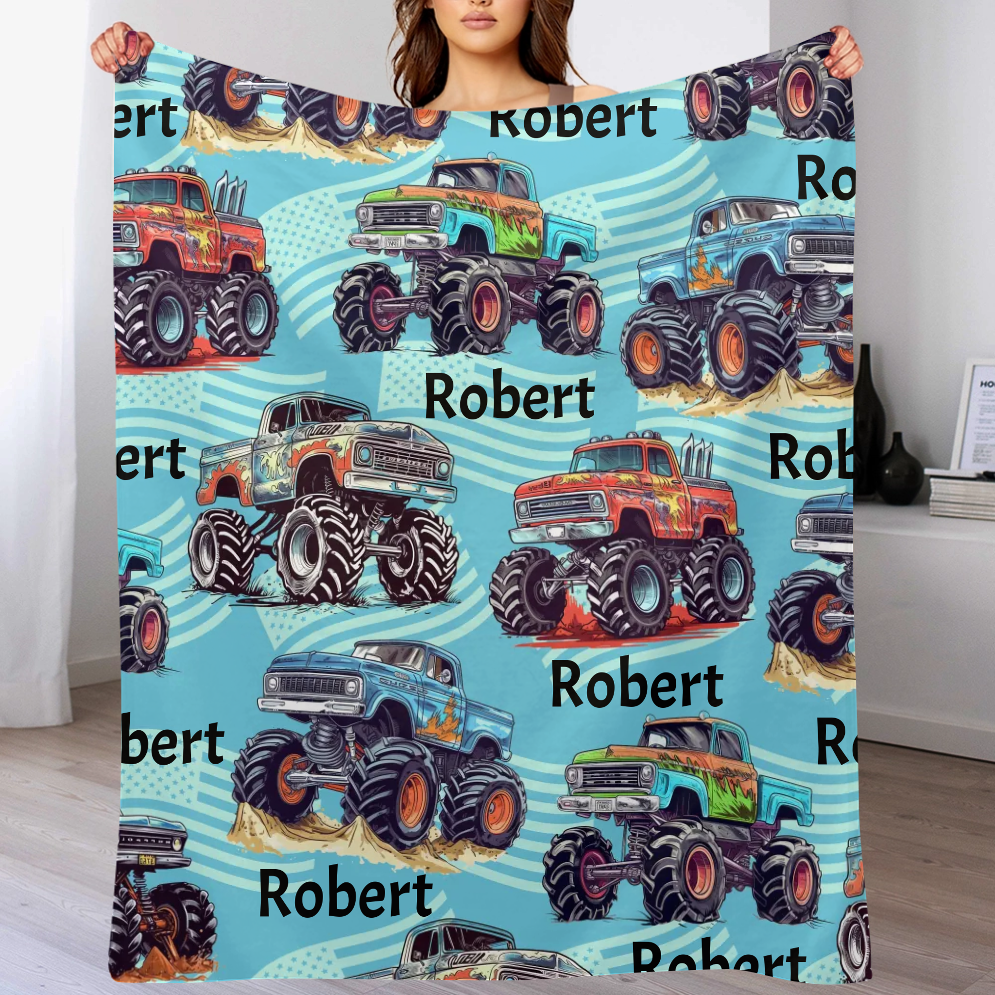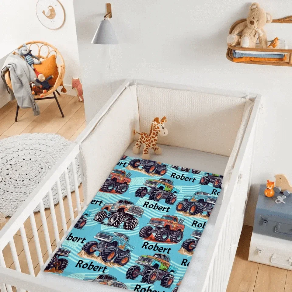 Personalized Big Gear Wheels Truck Car Blanket with Name for Boy Girl