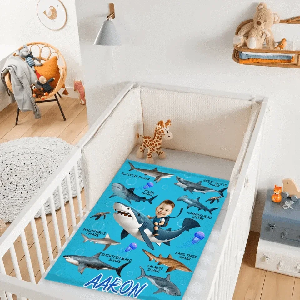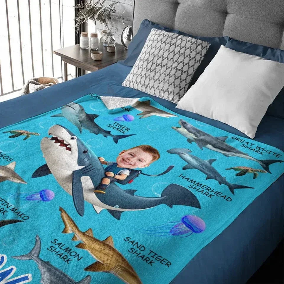 Personalized Custom Blanket - Boys Riding Shark Blanket - Gifts for Kids