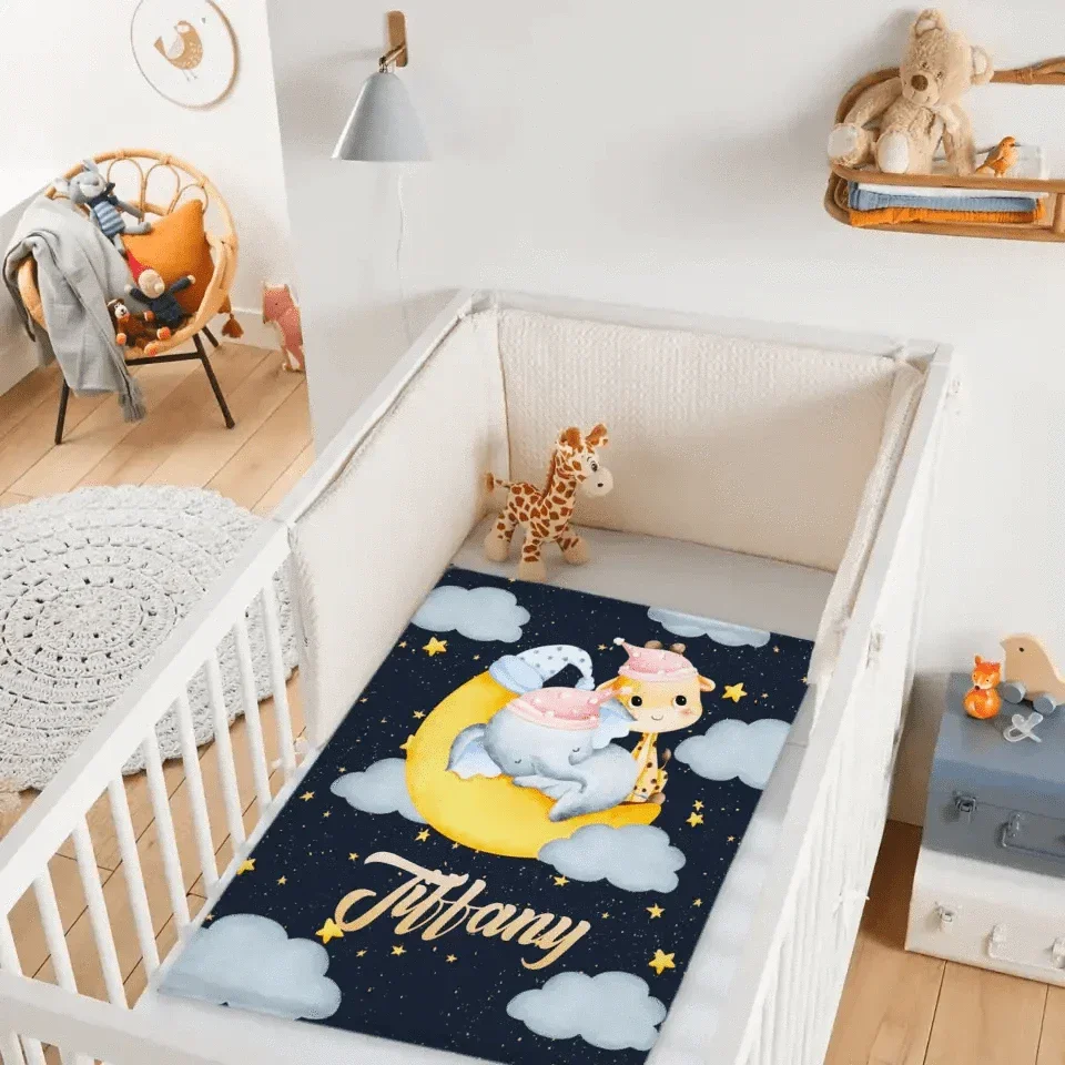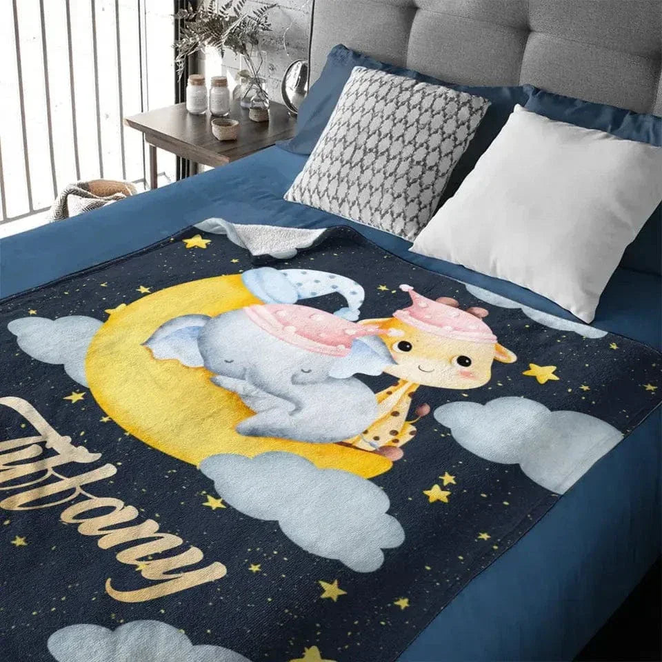 Personalized Elephant Giraffe Baby Name Blanket - Gift For Baby Toddler