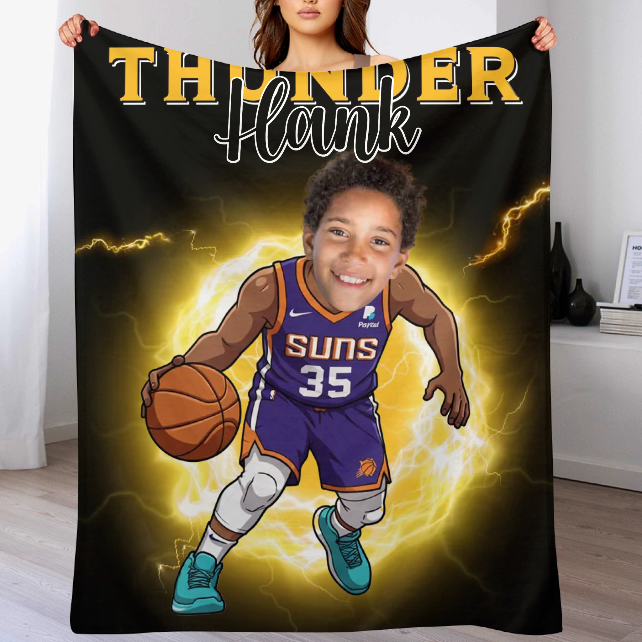 Personalized Name Picture Custom Cartoon NBA Blanket - Gifts for Suns Fans