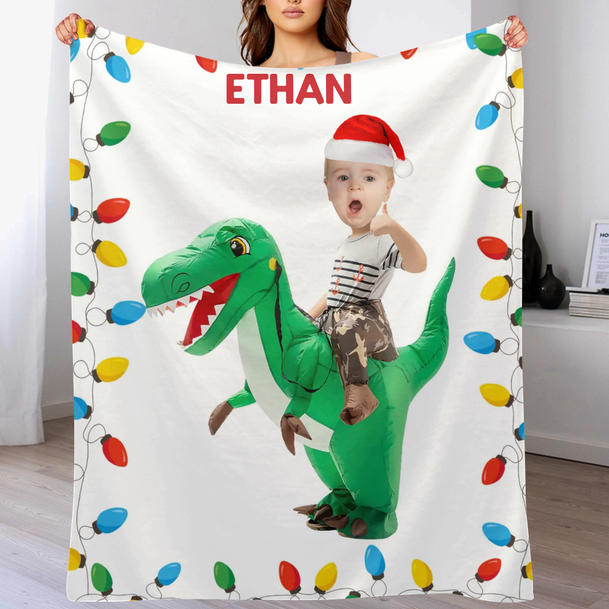Personalized Riding Dinosaur Blanket, Customized Photo, - Fun Family Gifts