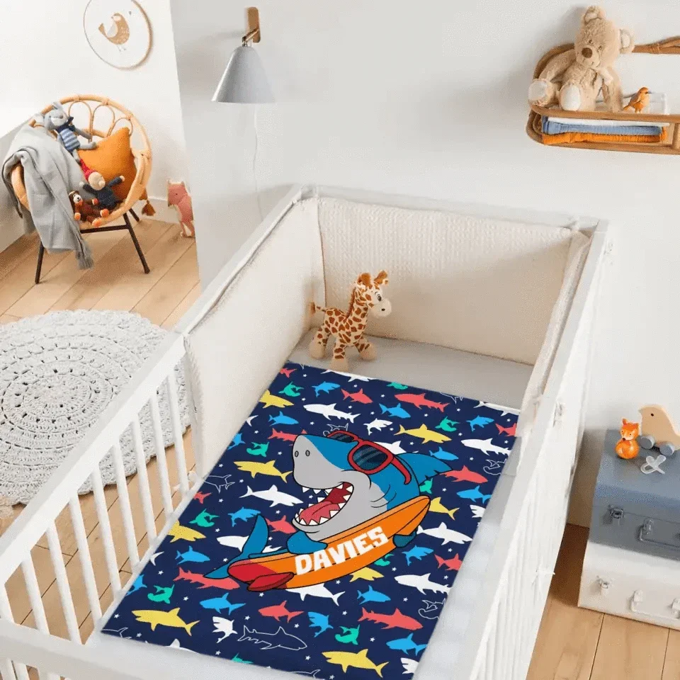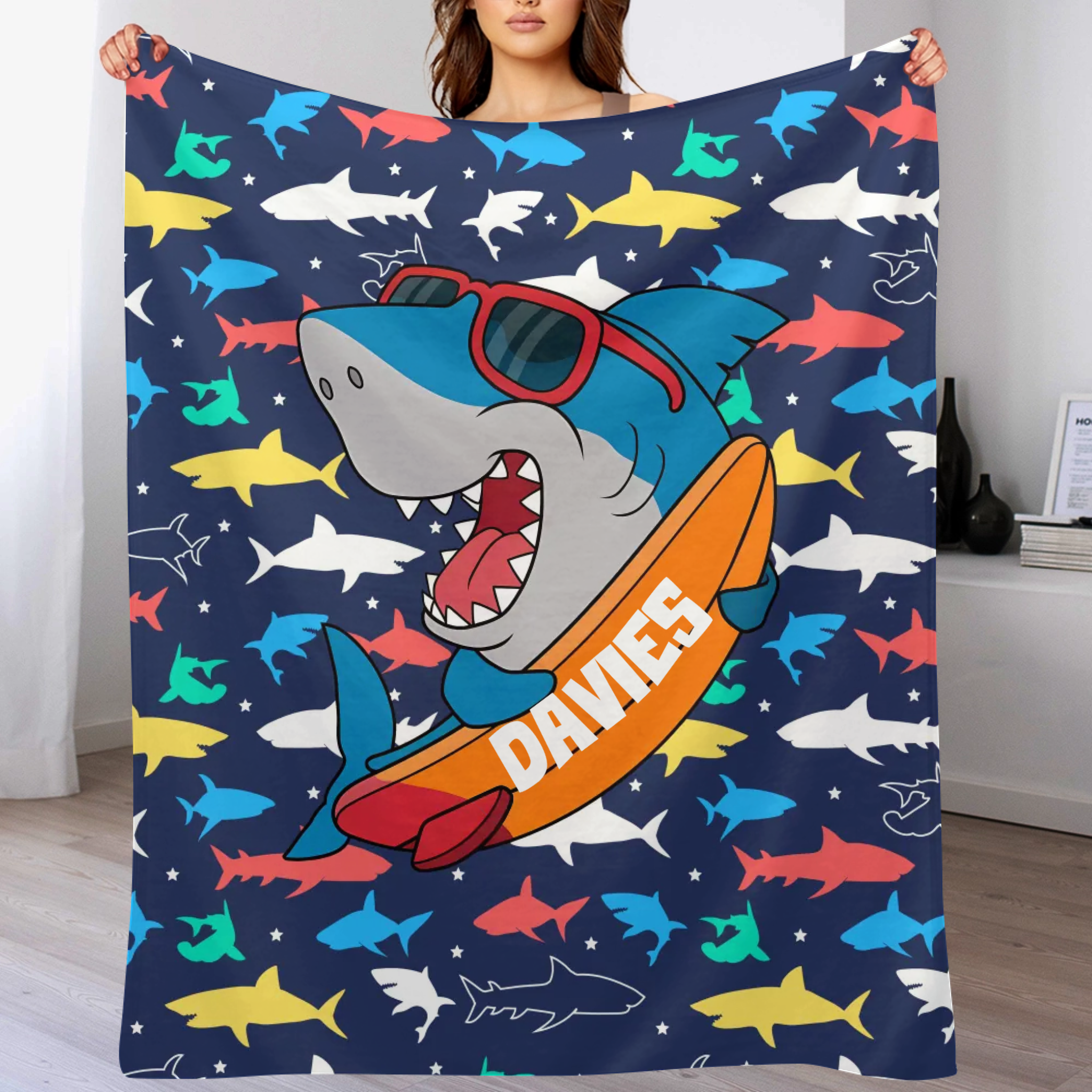 Personalized Skateboard Sunglasses Shark Name Blanket