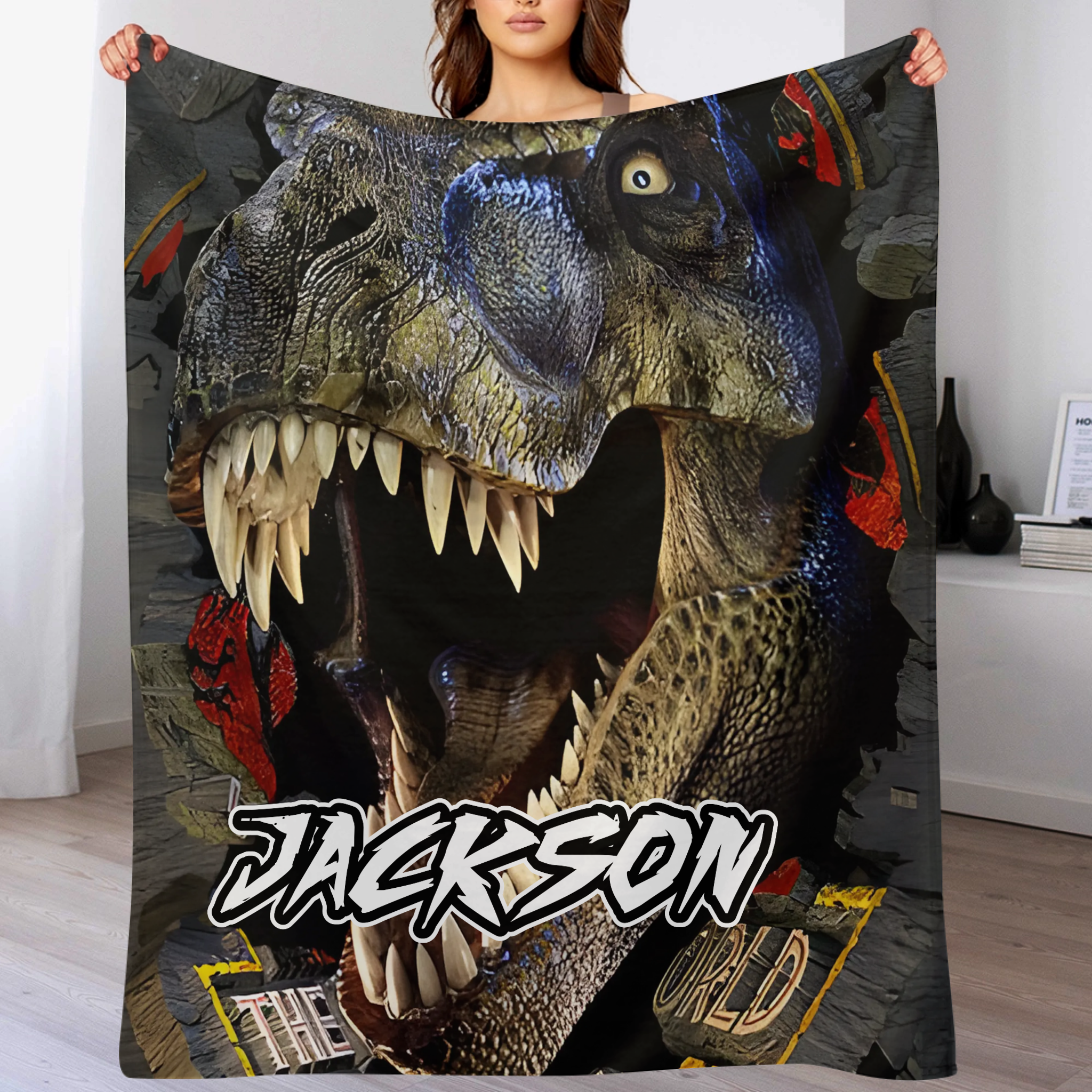 Powerful Dinosaur Customized Blanket- Personalized Name - Dinosaur Enthusiast Gift